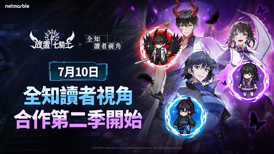 《放置七騎士》與 WEBTOON 系列作品《全知讀者視角》推出聯名合作更新。玩家將可獲得三位來自《全知讀者視角》的全新傳說英雄,包括 7 月 10 日登場的「救贖的魔王」、7 月 24 日登場的「韓秀英」,以及 8 月 7 日登場的「阿斯莫德」。此外,去年合作活動中的四位英雄:「金獨子」、「劉眾赫」、「鄭熙媛」和「劉尚雅」也將以更強大的姿態回歸《放置七騎士》。