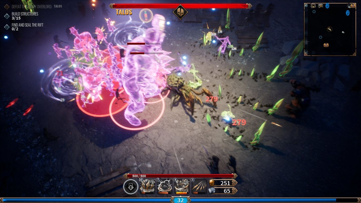 另外在遊戲中,玩家也可以在地圖各處收集各種建造設施所需的炭礦,並將這些資源設置在特定場所,藉此來配置製作各式各樣的設施,像是會噴出火焰的砲塔、能回復體力的泉水、能召喚夥伴的特洛伊木馬等等,幫助玩家掃蕩地圖上不斷來襲的敵人,增加玩家在地圖上的生存機率。