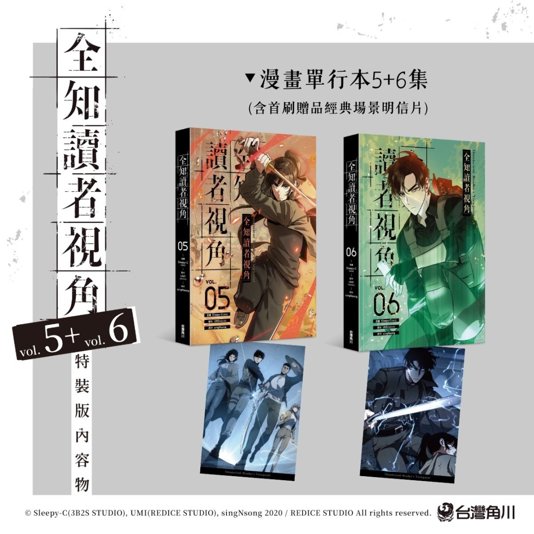 改編自超人氣韓國網路小說的《全知讀者視角》漫畫,自推出以來掀起熱烈討論與關注,系列作品屢屢獲得讀者高度回響與支持,近期也將推出真人版電影在台上映。延續其高人氣聲勢,漫畫單行本第 5、6 集將於 2025 年 7 月 17 日正式發售,同步推出收錄多項限定周邊的《全知讀者視角【5+6特裝版】》,並於指定通路& 2025 漫畫博覽會特別舉辦「購書贈電影票」回饋活動!