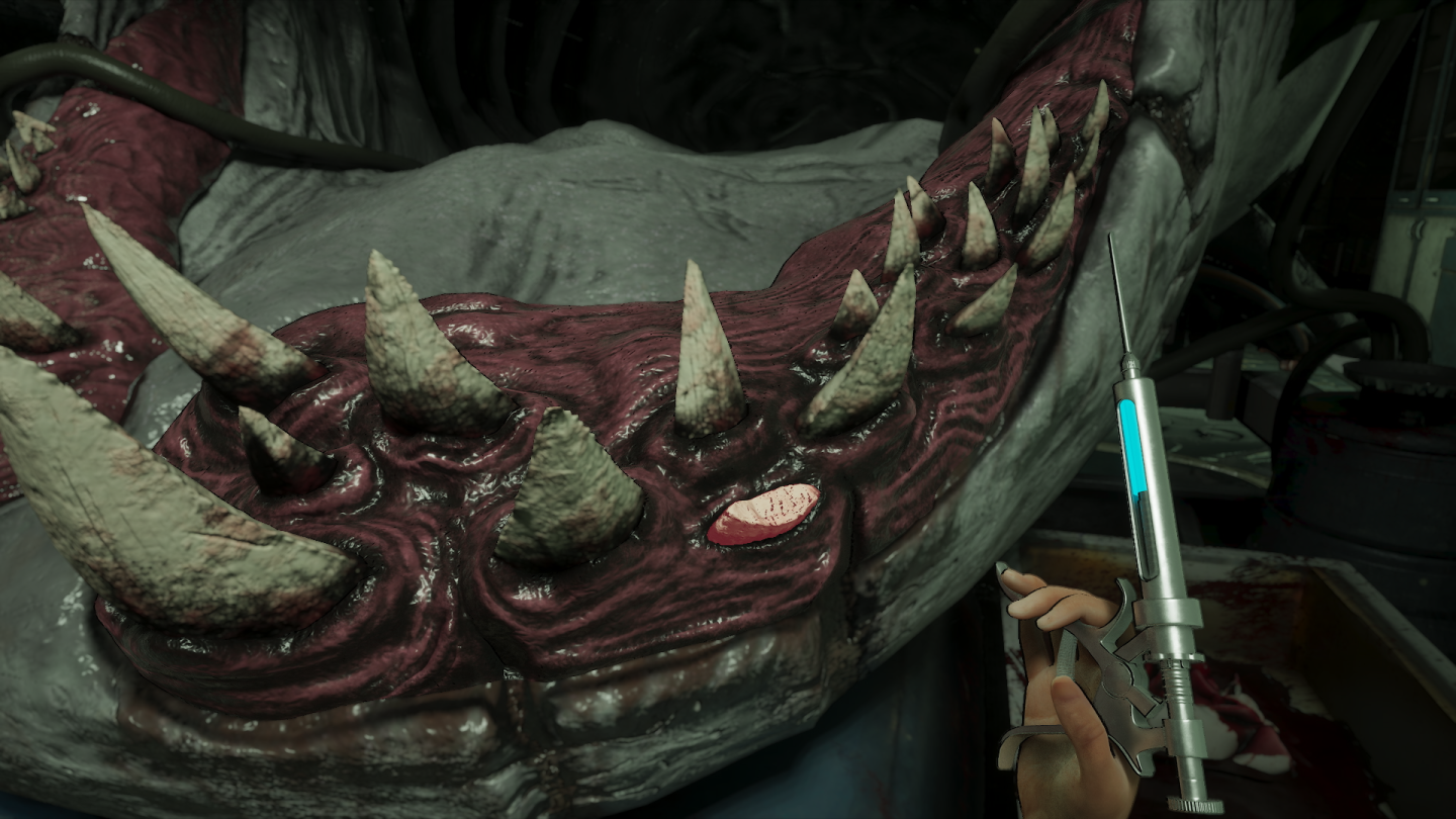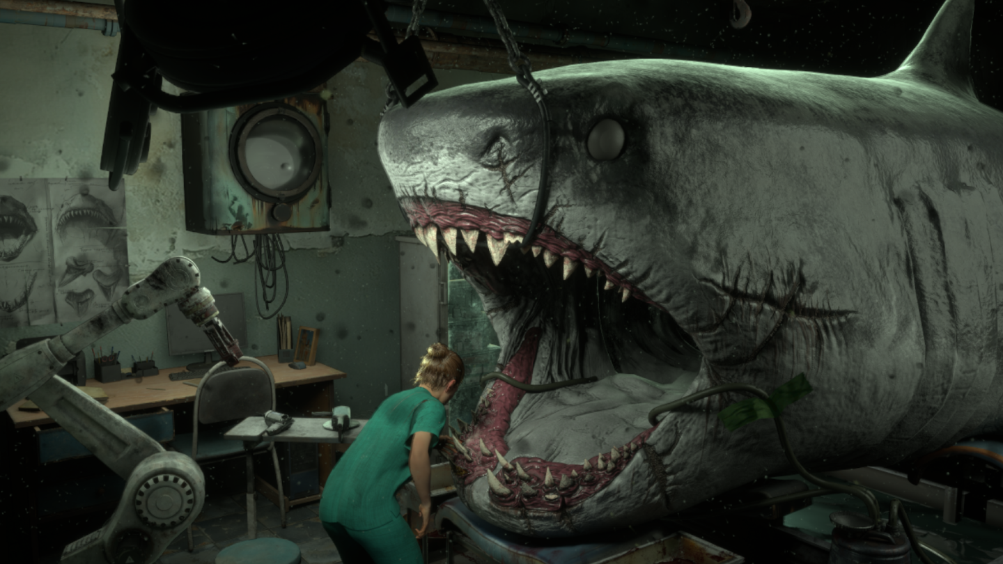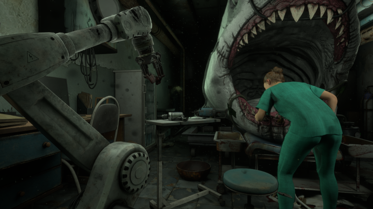 玩家將扮演一名「牙醫」,在閃爍燈光與鐵鏈環繞的地下室中,為巨型鯊魚進行牙科手術。雖然牠們表面上已被麻醉,但隨時可能甦醒——只要一個小失誤,畫面瞬間轉為驚嚇特寫,玩家將被吞噬殆盡!