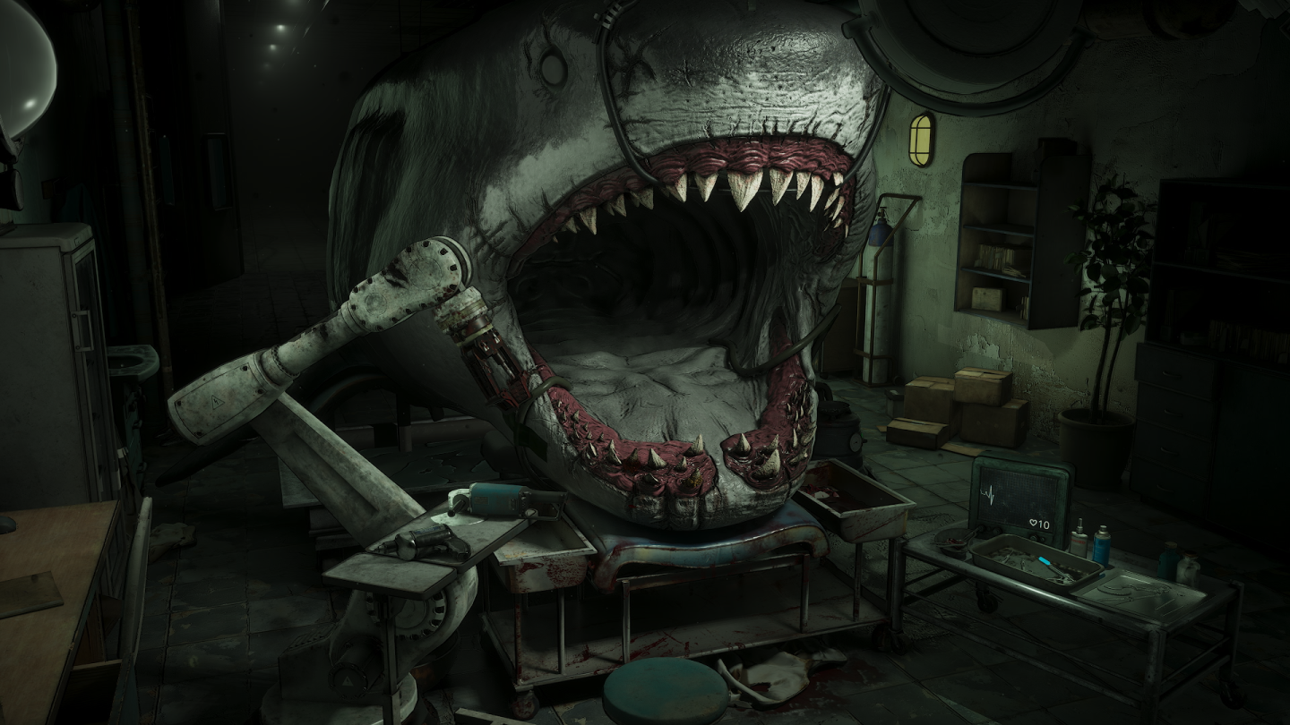 在本作中,將玩家帶入一間幽閉壓迫的地下牙科診所,面對的不是普通病人,而是被鎖住的兇猛鯊魚——每一次操作都是生與死的賭注!