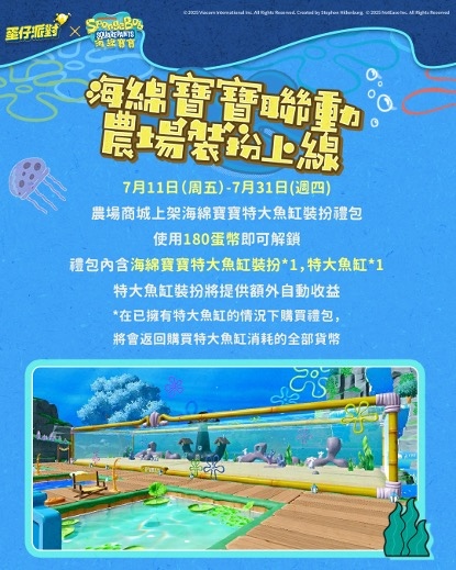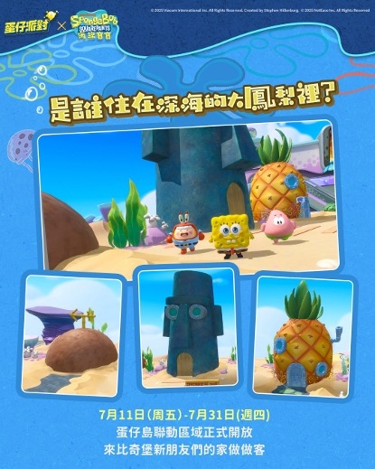 《蛋仔派對》×《海綿寶寶》聯動於 7 月 11 日快樂開啟!小蛋仔們快準備好,與海綿寶寶蛋、派大星蛋一起展開一場充滿友情與歡笑的夏日冒險!