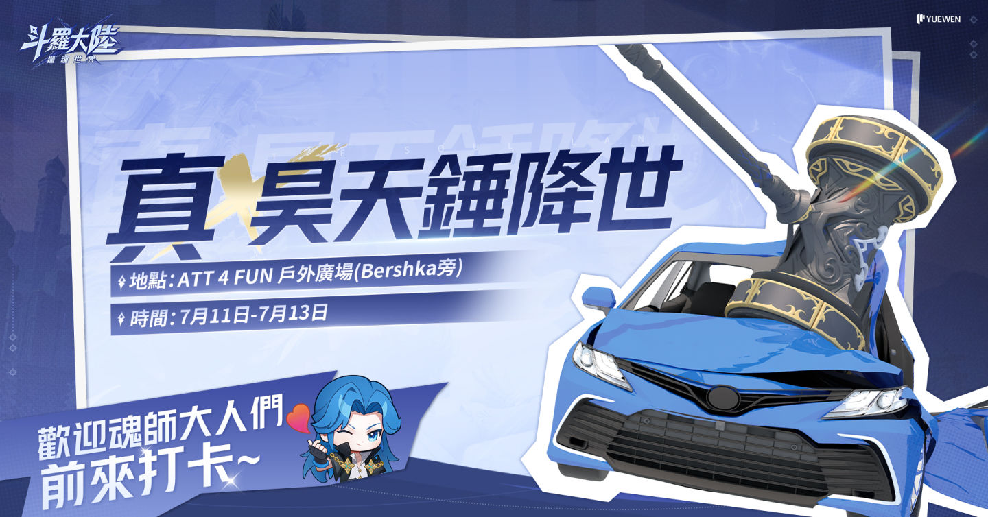 近日有到台北信義區的民眾可以發現,在ATT 4 FUN 戶外廣場,出現了高達 3 米的「昊天錘」裝置。此裝置以斗羅大陸經典的武魂「昊天錘」為核心設計,打造出極具視覺衝擊力的「昊天錘砸車」場景,玩家更可站上特製高台,親手擎起昊天錘,化身主角唐三,在台北 101 的壯麗背景下,拍下展現昊天威能的霸氣瞬間!絕對是粉絲不能錯過的打卡點!