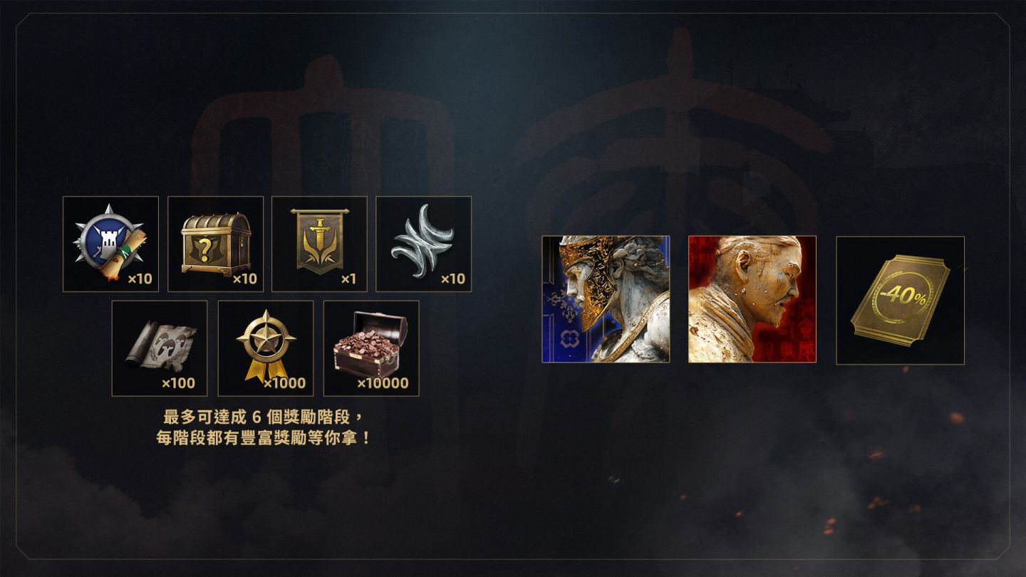 當陣營總勢力值達到一定門檻,將解鎖全服階段性獎勵,不同階段獎勵可疊加。所有獎勵將於 8 月 21 日維護後開放領取,最多共可獲得 6 個階段的獎勵,包含大量「古戰場手劄」、「週年慶珍藏禮盒」、「限定頭像」等。最終總勢力值較高的一方,額外獲得六週年限定稱號「萬勝」。