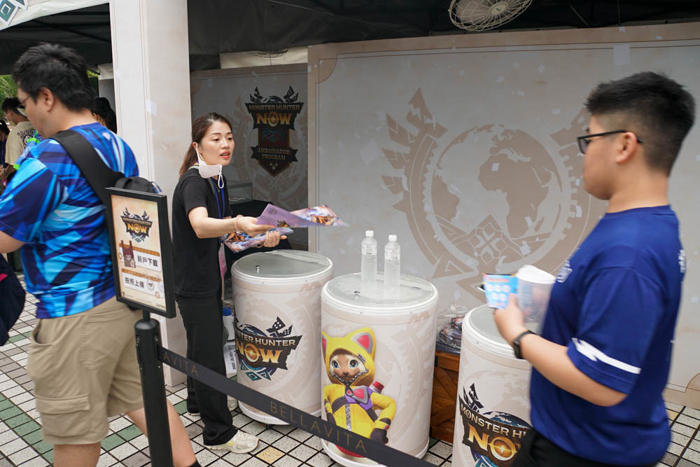 賽前設置於場外的「Monster Hunter Now 專屬攤位」更是本日活動的一大熱點,新玩家只要在攤位完成指定任務,下載《Monster Hunter Now》成為 HR 30 以下的獵人,即可獲得造型購物袋、限量資料夾,另外還有合照活動可獲得聯名紀念棒球鑰匙圈與紀念棒球帽。