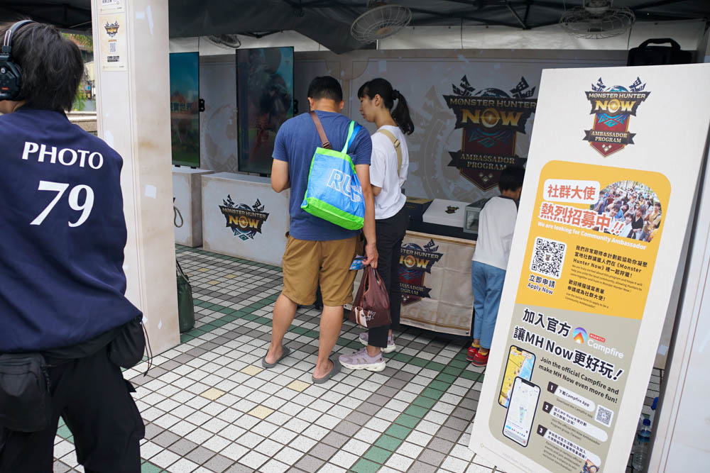 活動時段中,Fubon Angels 以及知名社群創作者學長 Abby 也現身攤位,與現場玩家組隊狩獵送出獎品,學長 Abby 表示自己雖然是剛回鍋的 HR 未滿 100 玩家,但是能感受到玩家社群的友善以及高手雲集的氛圍,尤其在七月底將登場「溟波龍」的狩獵任務,得趕快衝上 HR 100 級才能參與狩獵。原本預定是來舞台帶新手玩家的,結果現場上台的玩家都是 HR 破 200、300 的資深獵人。