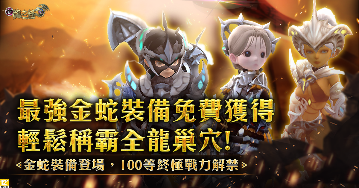 全新 Lv.100 傳奇武器與防具「金蛇系列」也在此次更新中推出,不僅支援一般古代人防具及骨龍防具間的套裝效果,更具備裝備無爆強化與技能詞條洗練等功能。玩家可透過副本挑戰或製作取得材料,材料輕鬆取得且強度媲美骨龍裝備,是在通往挑戰骨龍巢穴路上的絕佳選擇。