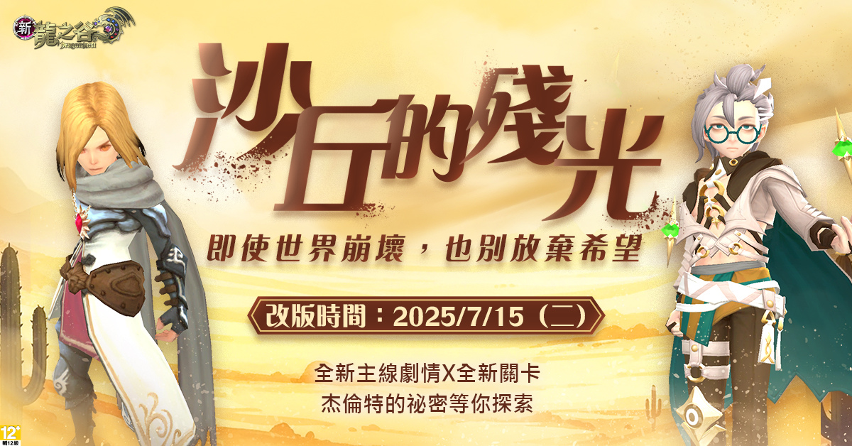 遊戲橘子旗下熱門遊戲《新龍之谷》全新主線章節「沙丘的殘光」即將於 7 月 15 日上線,本次改版將帶來豐富內容,包括全新劇情區域、傳奇百等裝備「金蛇系列」、全新龍玉道具雙軌強化與新增「次元系統」,全面刷新戰鬥規則與角色養成方式,邀請所有玩家一同踏入沙塵與希望交錯的未知世界。
