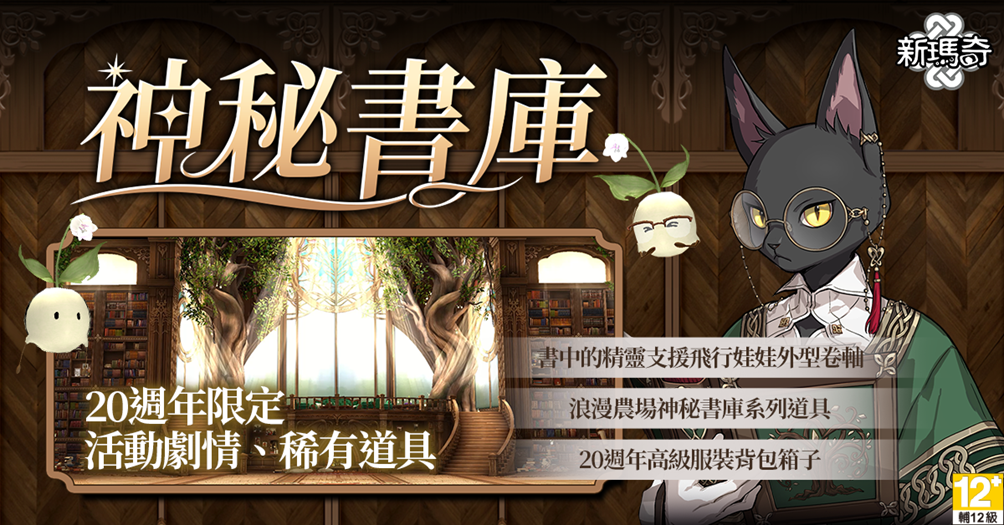 「神秘書庫」活動,將提供為期四周的二十週年特別故事線。完成特別故事的玩家可獲得「新瑪奇凱爾特服裝」。此外,同步推出的「20週年Ontime活動」獎勵包含「20週年夢幻之星紀念稱號」與「30等級最高素質回音石」。「20週年即時抽獎」則有機會獲得「森林遊俠」、「深淵龍」、「聖戰士」等特別外觀服裝。完成遊戲內設置的「試煉舞台」亦可獲得三款活動限定稱號。