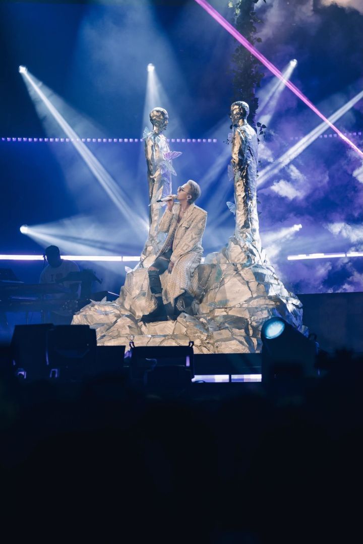G-DRAGON展現無可取代的舞台魅力,演唱〈POWER〉、〈TOO BAD〉、〈DRAMA〉等人氣歌曲,點燃全場氣氛。演出期間,他更驚喜向台灣粉絲深情喊話,感謝多年支持,並邀請全場大合唱〈DRAMA〉,場面震撼人心、掌聲不絕。