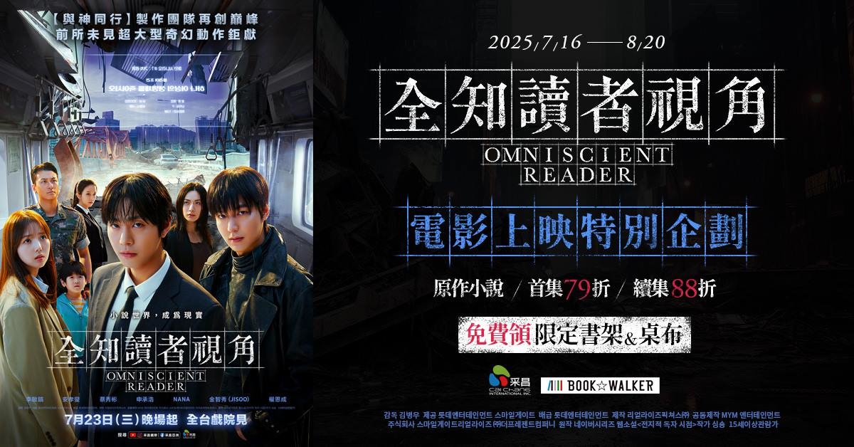 本月超強連動!BOOK☆WALKER 與采昌國際多媒體攜手推出韓國小說改編作品《全知讀者視角》電影上映特別企劃。7 月 16 日至 8 月 20 日,前往活動網頁就能免費領取電影限定書架、手機桌布,活動期間收藏原作小說享首集 79 折、續集單本 88 折優惠,整套原價 3,780 元,折扣後只要 3,298 元,搭配新會員註冊即送的不限金額 79 折優惠券,更是下殺至 2,606 元!7 月 22 日前參加官方社群活動還有機會獲得電影兌換券,一起進入戲院感受「金獨子」逆天開掛的真實震撼!