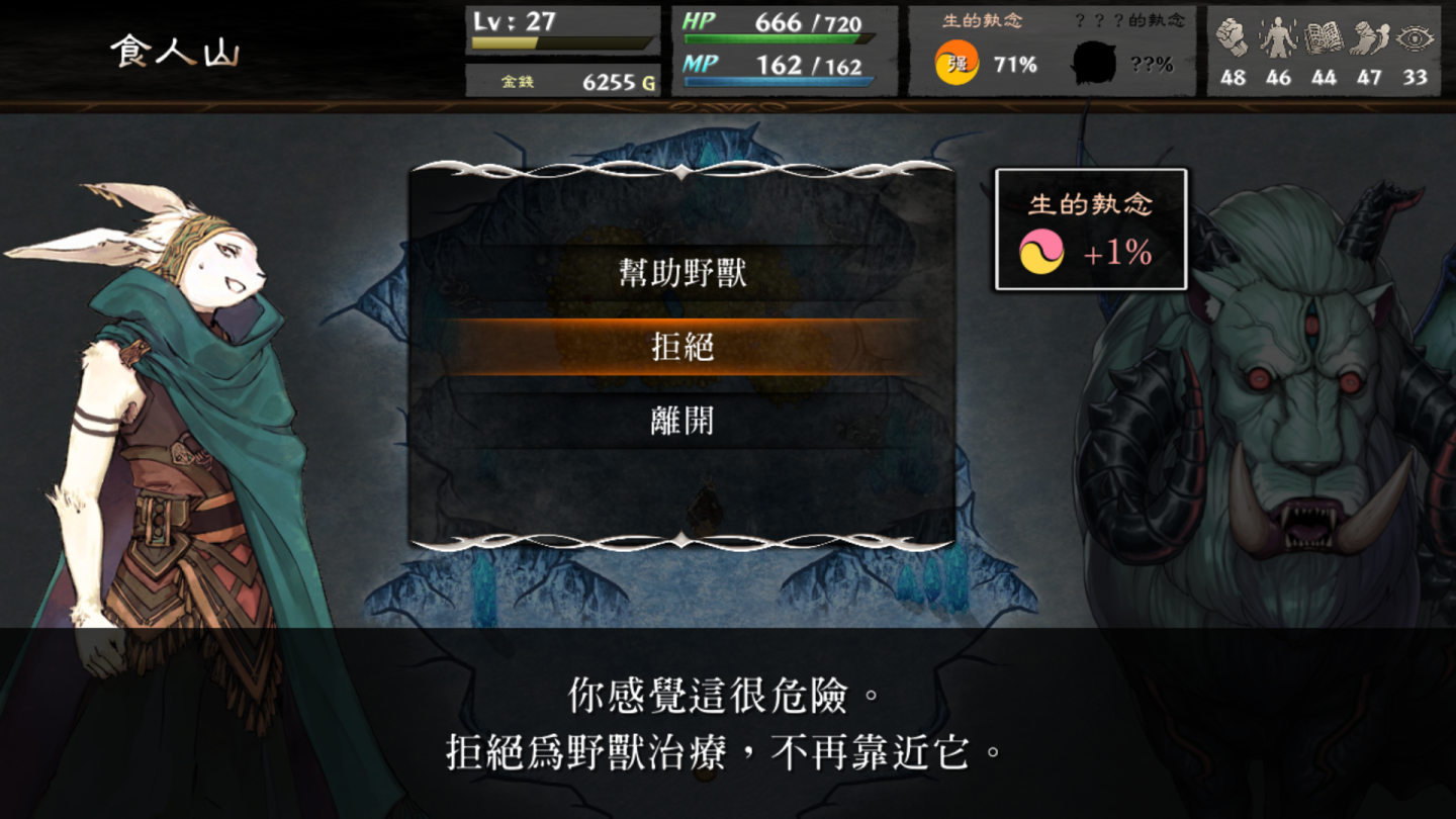 而玩家就將化身兔人青年葛修,在旅途和各種邂逅中,做出一次次的選擇。你所作出的選擇都會轉化為「命的執念」或「力的執念」,影響葛修的思維方式。是否要為了某種夙願而尋求力量?是否有東西比自己的性命更重要?葛修最終得出什麼樣的結論,締造一幕怎樣的故事,都要視玩家的選擇而決定。