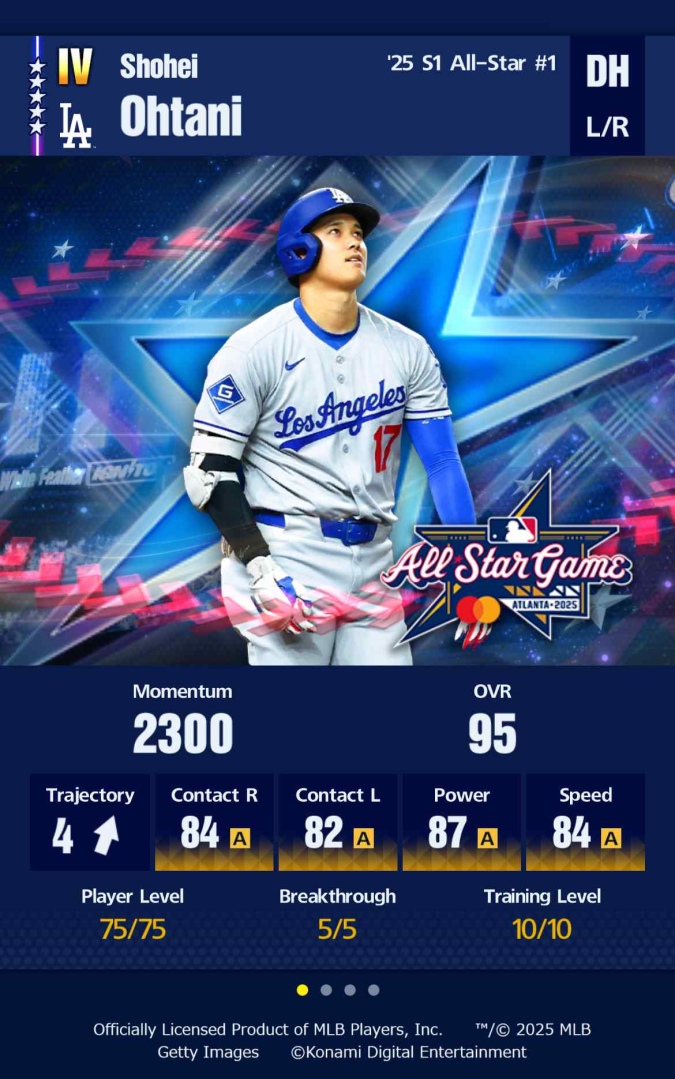 Konami 宣布,旗下手機遊戲《eBaseball:MLB Pro Spirit》(MLB 野球魂)推出「All-Star 第1波」期間限定招募。