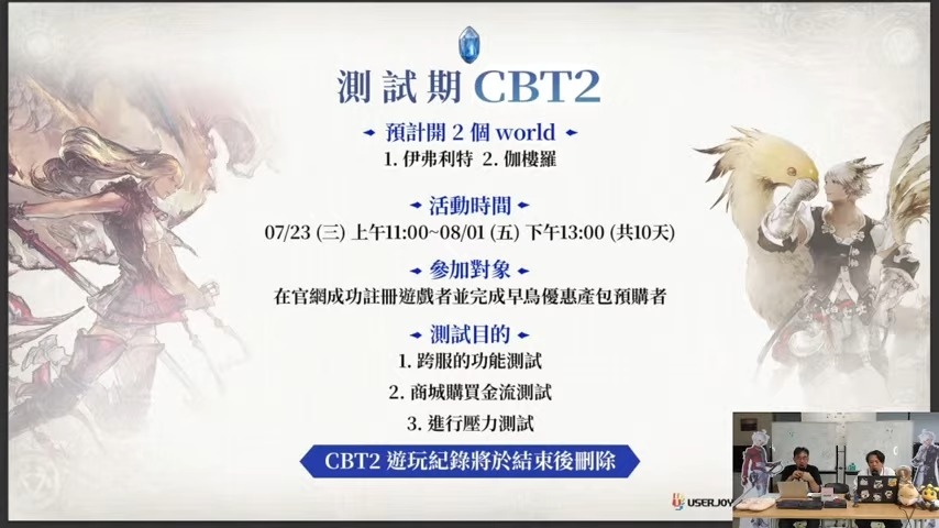 繁體中文版《Final Fantasy XIV》營運團隊於 16日晚間舉行直播,向玩家報告首次封閉測試(CBT1)的詳細回饋、預告二次封測規劃細節,並即時解答玩家提出的疑問。強調 CBT2 作為系統整合與壓力測試的關鍵目標,以確保繁中版遊戲品質能符合 SQUARE ENIX 原廠嚴標準,才能往下一階段推進。