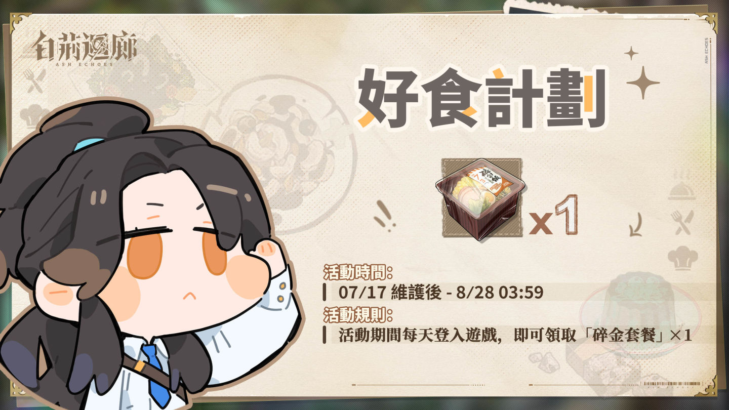 活動期間登入遊戲可獲得;「碎金套餐」×1(每日)。