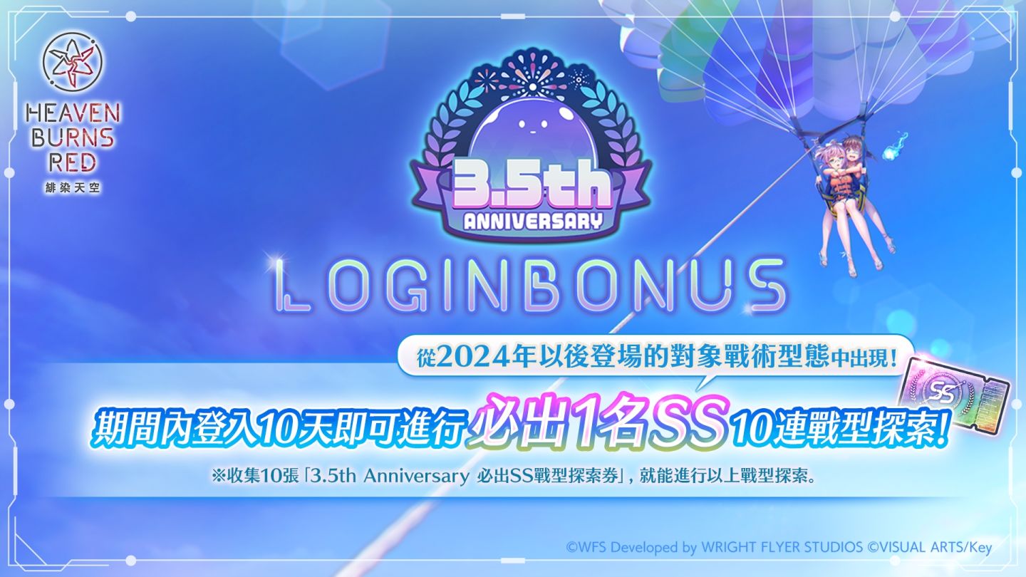 登入 10 天即可進行必出 1 名 SS 10 連戰型探索!舉辦「3.5th Anniversary 登入獎勵」!