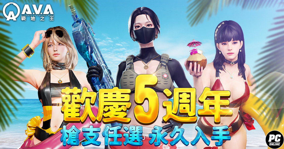 樂意傳播旗下人氣經典 FPS 射擊遊戲《A.V.A 戰地之王》熱鬧迎接五週年!本月份改版內容除了推出眾所期盼的爆破模式全新地圖「南山塔」外,週年慶典活動更是獎項豐厚,各式永久槍枝送不停!