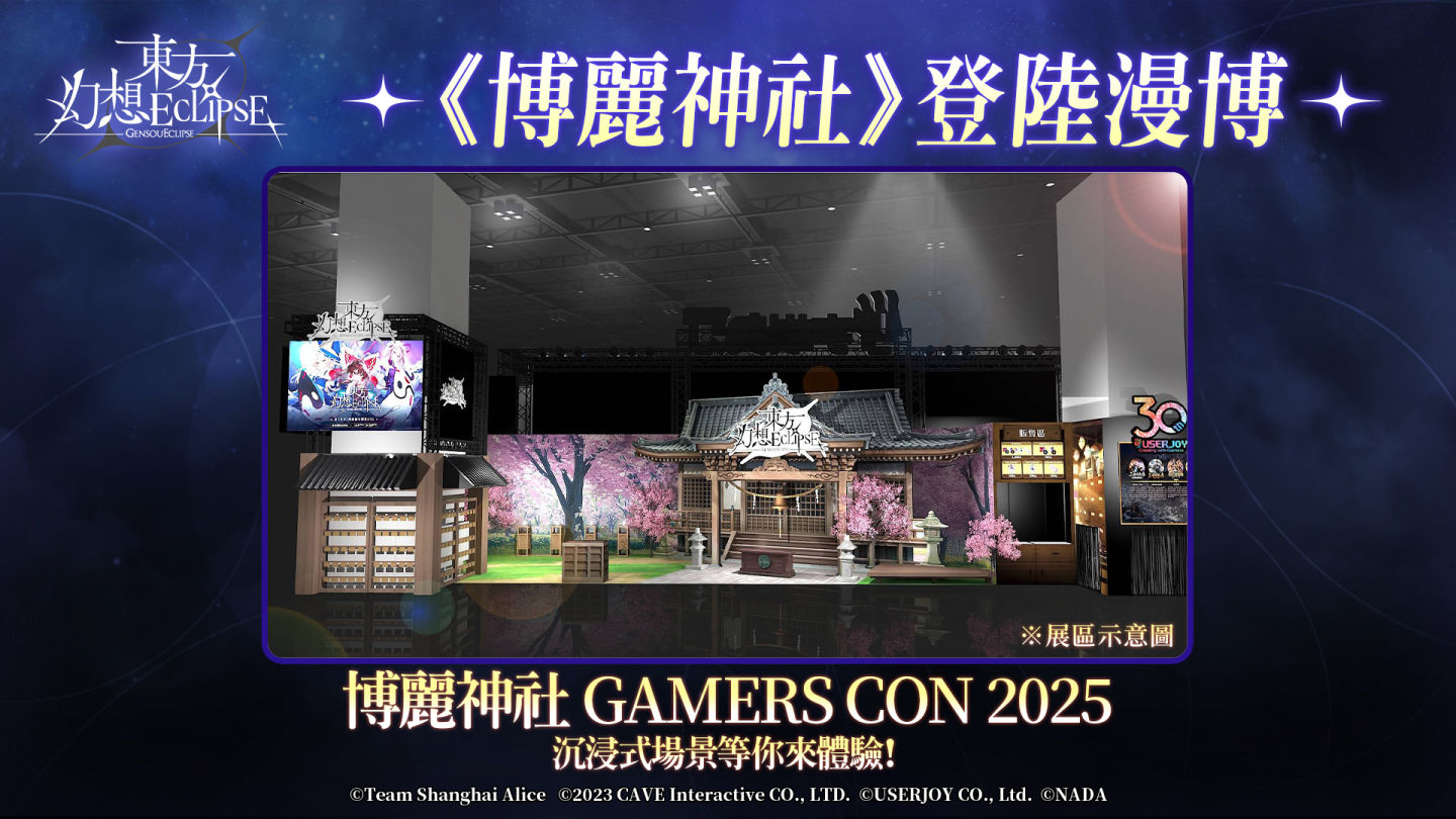 將於 7 月 23 日正式上線的《東方幻想 ECLIPSE》特別打造「博麗神社」沉浸式主題展區,現場結合試玩體驗、互動任務與 1v1 射擊對抗賽,現場也將同步販售原創周邊商品並舉辦 Coser 合影、官方舞台活動等,邀請東方眾親臨幻想鄉。
