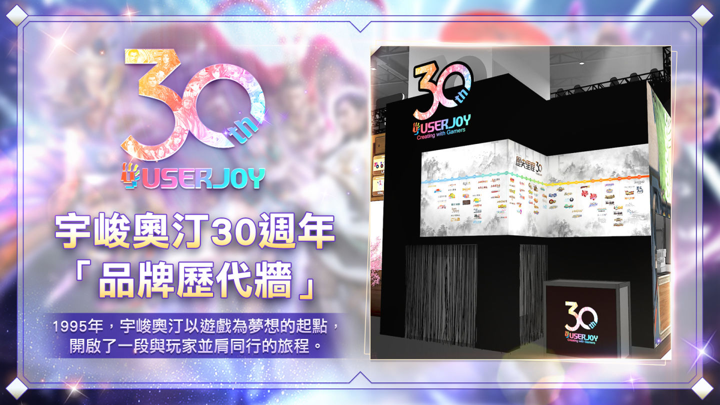 宇峻奧汀創立 30 週年,官方特別於展區中設置「品牌歷代牆」,與玩家一同回顧三十年來的經典遊戲歷程、重溫每一款深植人心的代表作。現場同時開放多款新作搶先試玩,從經典傳承到創新突破,邀請玩家共同見證宇峻奧汀的成長軌跡。