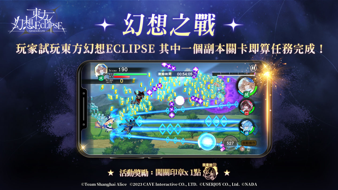 《東方幻想 ECLISPE》打造沉浸式展區,以「博麗神社」為主軸,結合多樣化參與活動與實體互動,邀請玩家親身走入幻想鄉,深入感受東方魅力。官方特別規劃三大參與任務,完成指定挑戰即可獲得限定周邊。