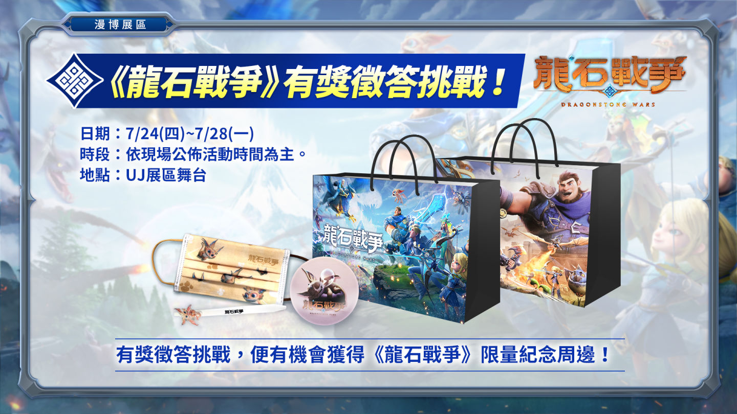 《龍石戰爭》專屬展區將邀請玩家親臨現場,搶先體驗融合全新技術與設計理念打造的獨特策略戰場。同時,只要完成指定互動任務挑戰,即可獲得《龍石戰爭》限定專屬周邊,精彩內容不容錯過!