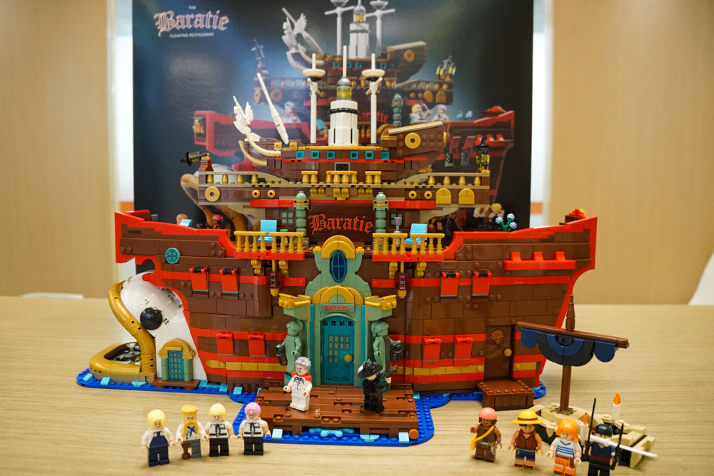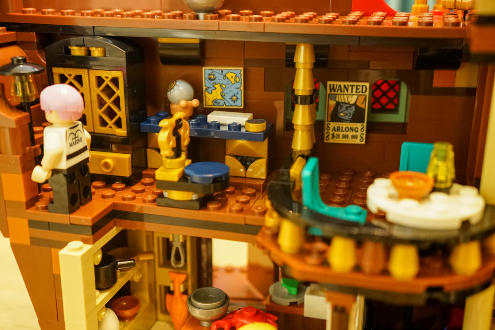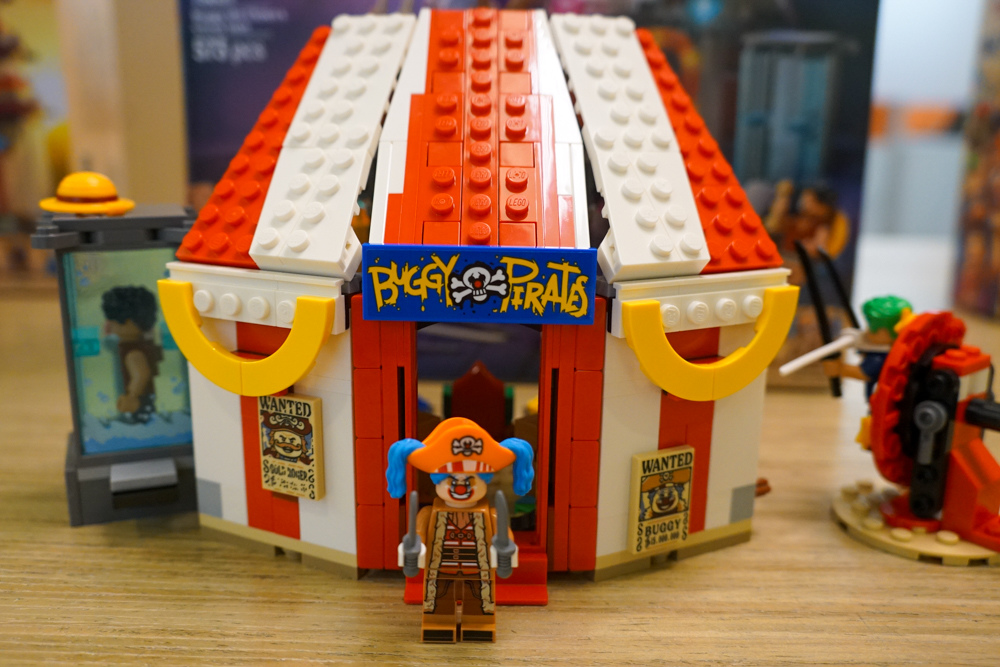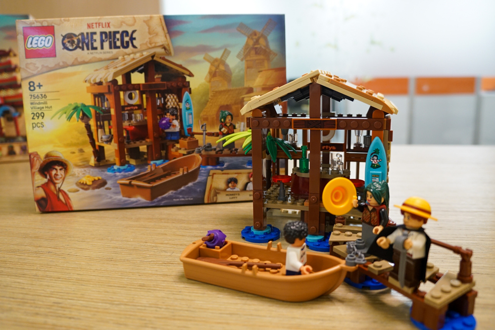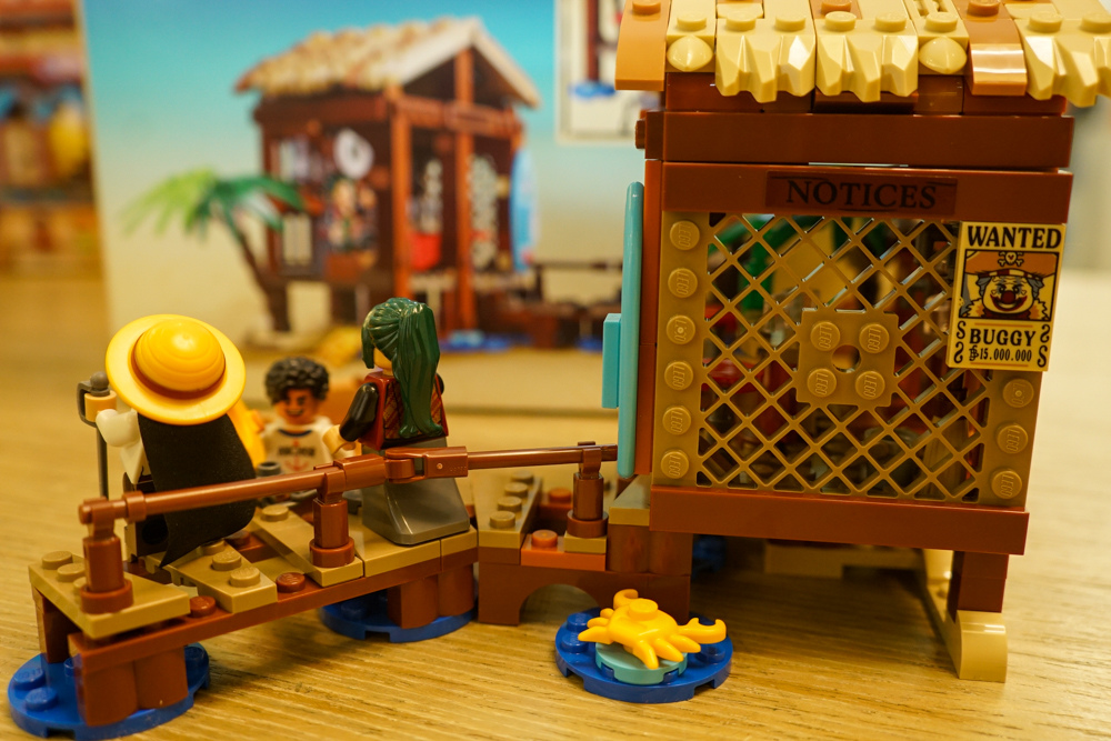 作為入門粉絲級設計,包含 299 件零件約一小時可組裝完成,內附魯夫、傑克、瑪姬,小屋可拆卸屋頂,內部重現魯夫偷吃橡膠果實的派對酒吧場景,並附有小碼頭和船隻。魯夫人偶戴著草帽,露出可愛笑容,完美捕捉童年冒險的起點。孩子可拆下海濱商店的屋頂。進入充滿樂趣的內部,探索經營商店和招待顧客所需的配件。牆上可貼「懸賞」海報,屋外有以鏈子固定在碼頭的海賊船玩具。