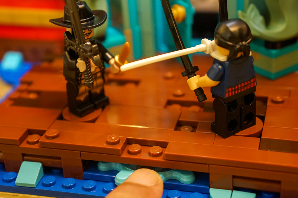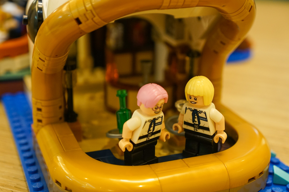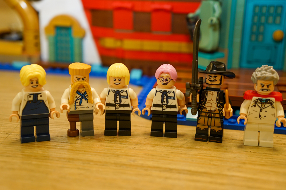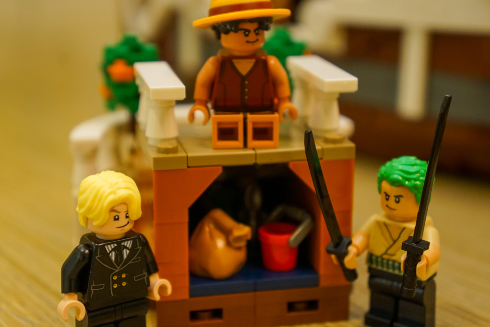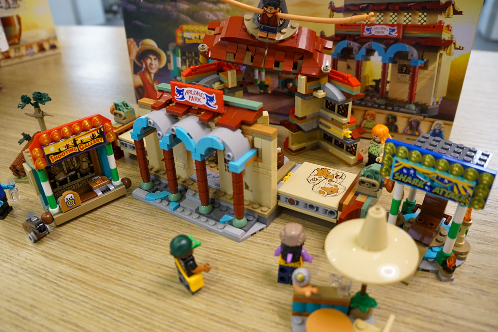作為入門粉絲級設計,包含 299 件零件約一小時可組裝完成,內附魯夫、傑克、瑪姬,小屋可拆卸屋頂,內部重現魯夫偷吃橡膠果實的派對酒吧場景,並附有小碼頭和船隻。魯夫人偶戴著草帽,露出可愛笑容,完美捕捉童年冒險的起點。孩子可拆下海濱商店的屋頂。進入充滿樂趣的內部,探索經營商店和招待顧客所需的配件。牆上可貼「懸賞」海報,屋外有以鏈子固定在碼頭的海賊船玩具。