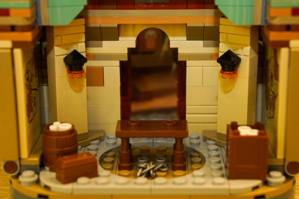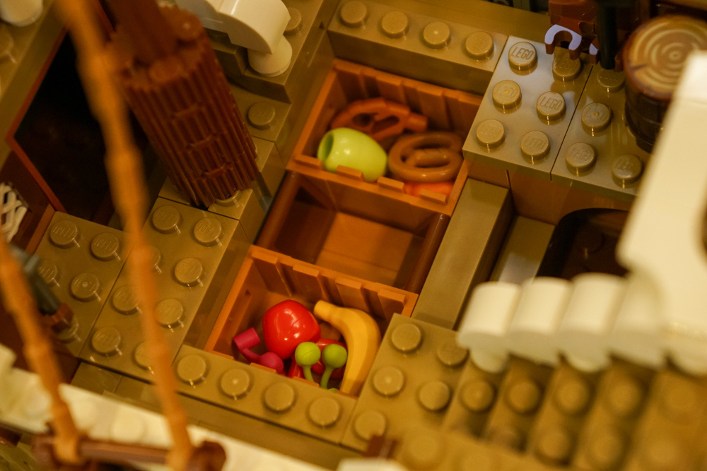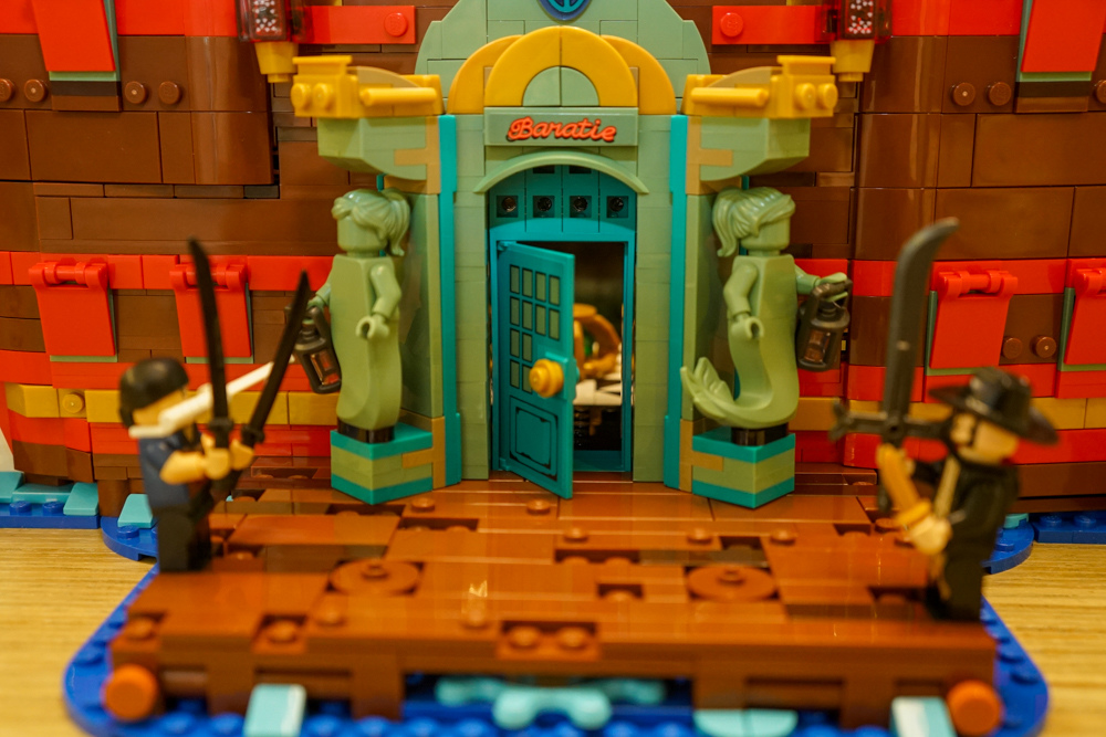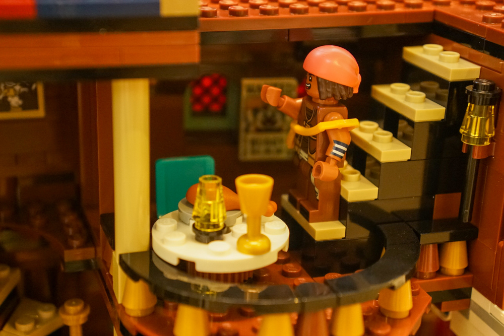 其特色在船形設計的外觀外,翻面可看到內部包含多個房間,包括廚房與用餐區、哲普的艙房和寶藏室。內含許多忠實還原的食物和飲料配件,以及經典電話蟲配件。