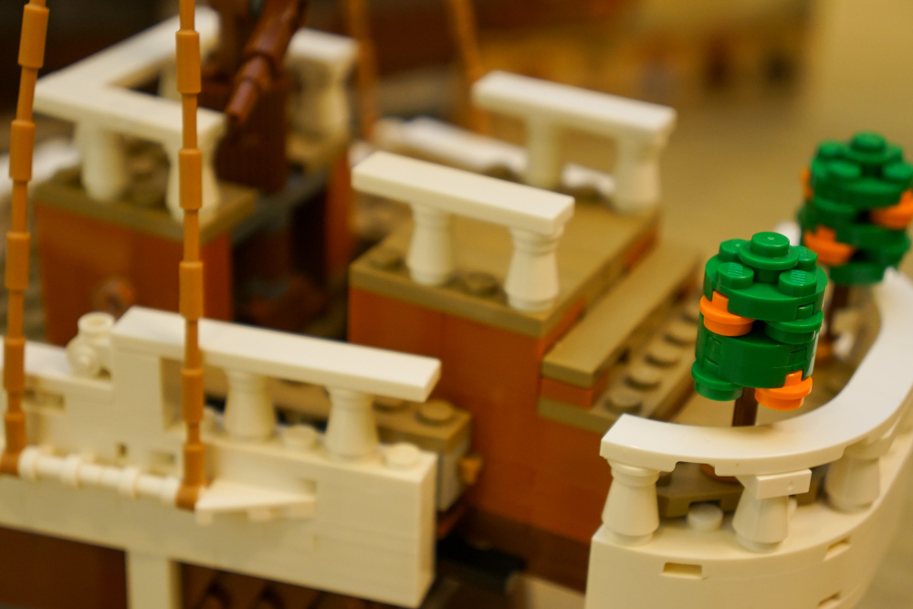 包含 1376 件零件,內附魯夫、索隆、娜美、騙人布、香吉士的早期草帽海賊團成員,布質船帆印有草帽標誌,內部有廚房和橘子樹。船頭羊首設計可愛,可與芭拉蒂套裝對接,附4張通緝令。