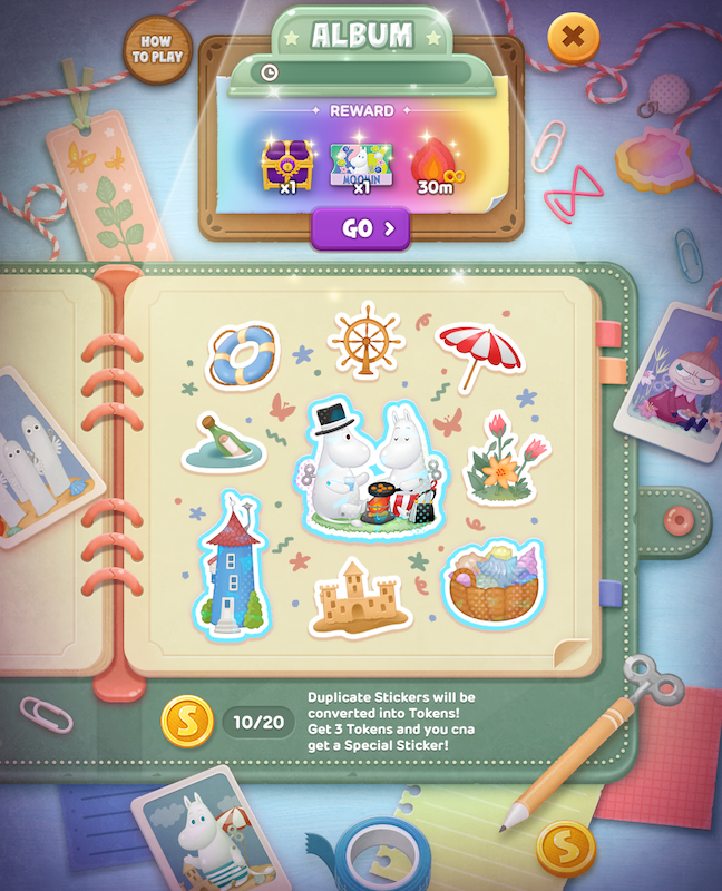 在活動期間,努力通過新關卡來蒐集貼紙並完成相簿,就能獲得活動獎勵喔!