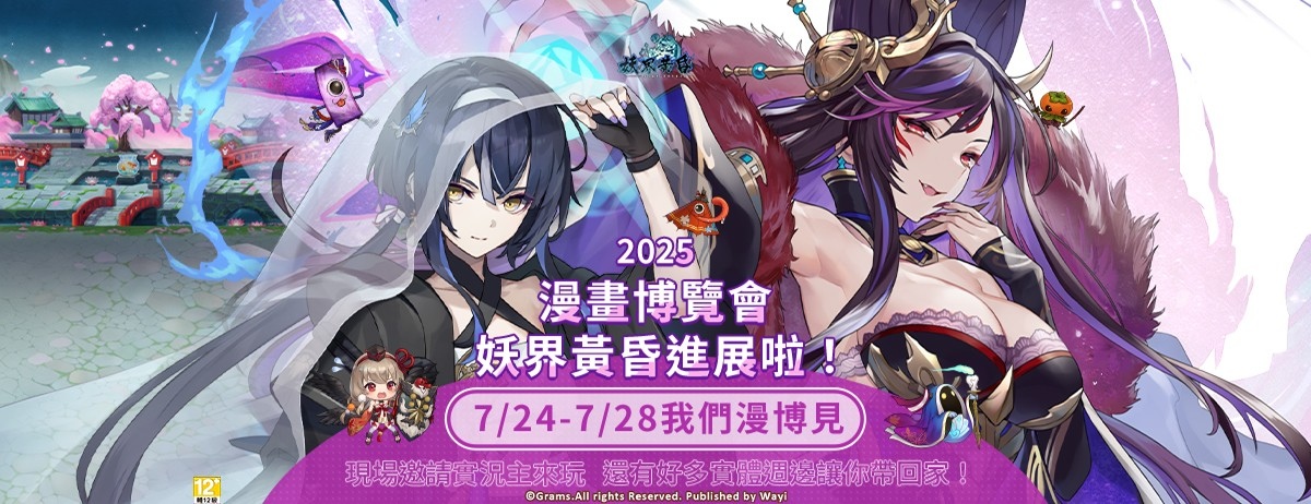 .精靈鬼:最美實況主精靈鬼將於 7 月 27 日出席,帶來有獎徵答及互動遊戲,並提供獎勵。舞台互動時間為 11:30~12:00、12:40~13:00、15:40~16:00,其餘時間將在《妖界黃昏》攤位推廣遊戲下載。