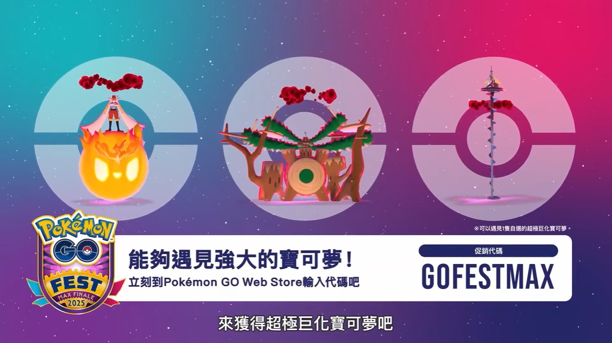另外,能夠遇見強大寶可夢的促銷代碼「GOFESTMAX」現正發布中,訓練家們可以現在立刻來輸入領取,獲得這些強大的超極巨化寶可夢,為接下來的無極汰那挑戰作好準備。