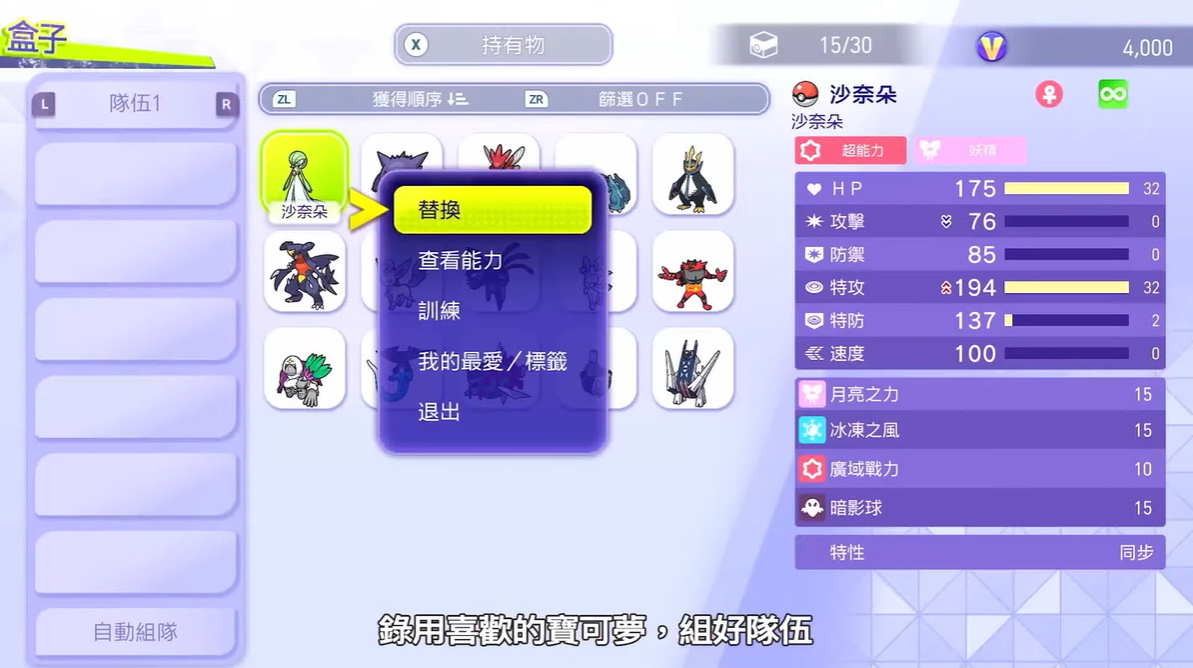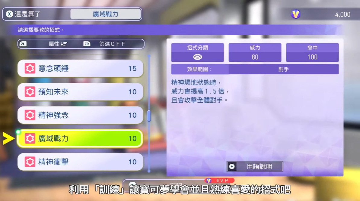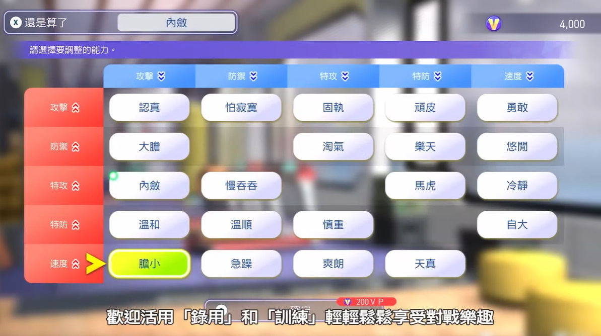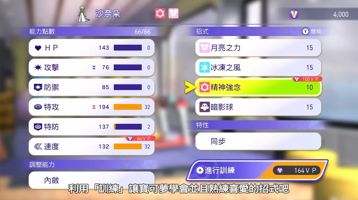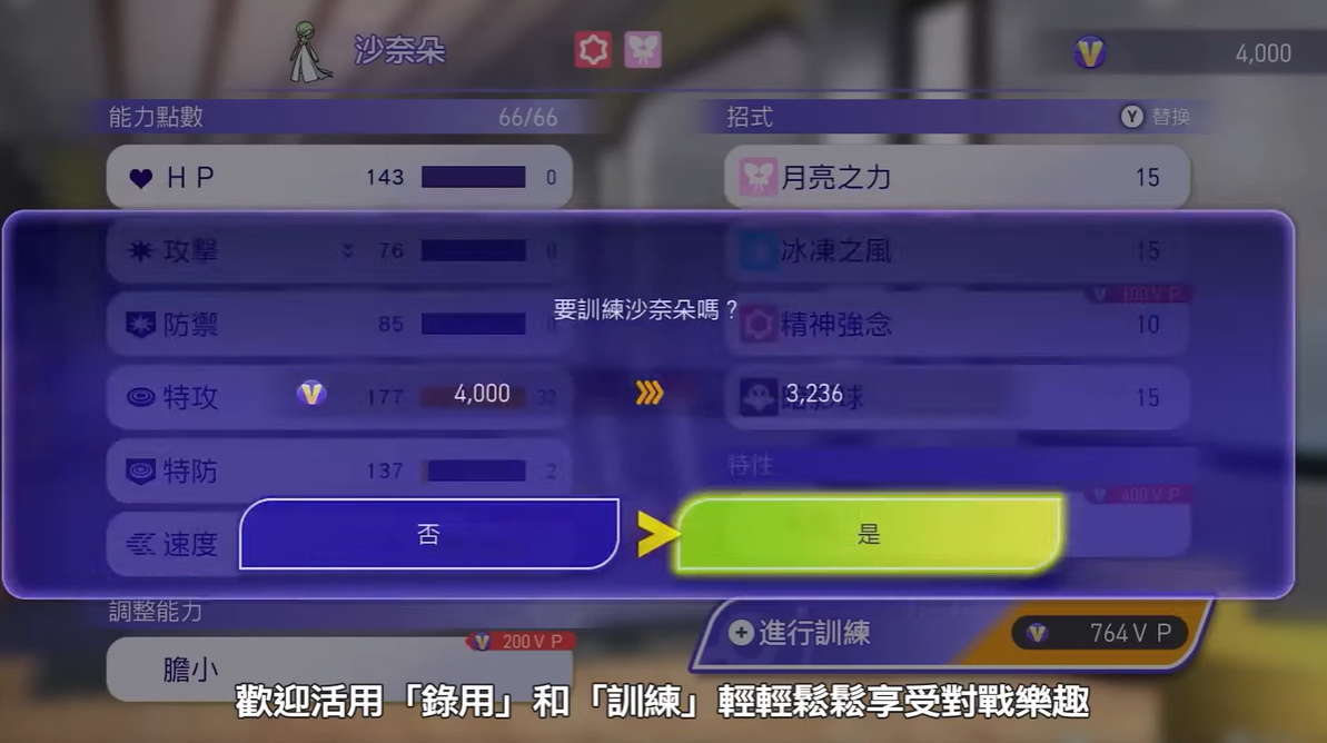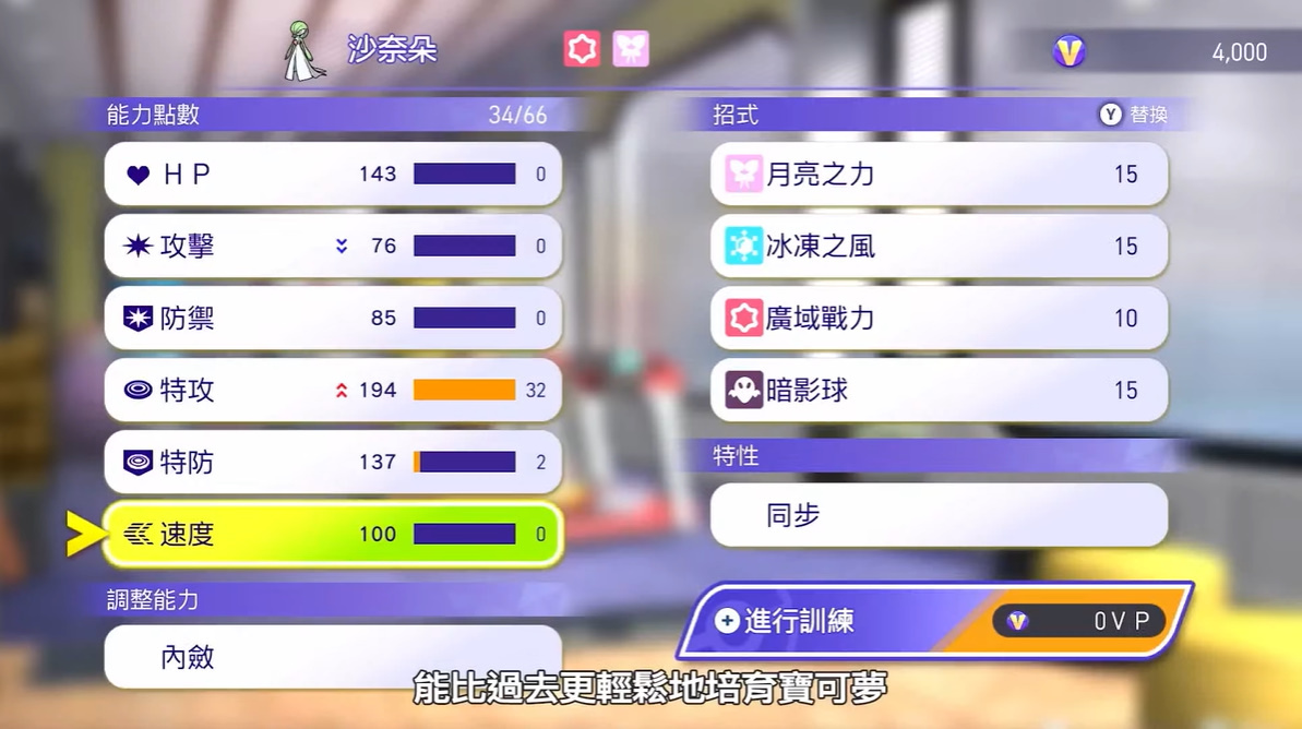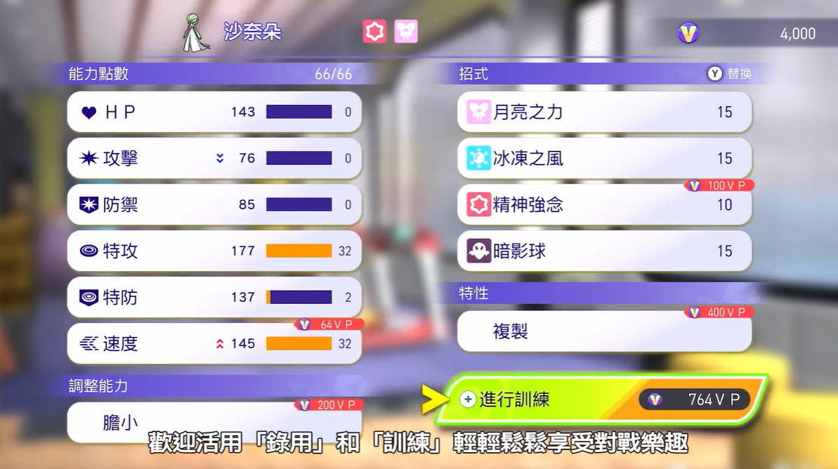 至於在本作的培育訓練方面,玩家可透過訓練移動計量槽來調整寶可夢的能力點數,藉此來比過去更加輕鬆培育寶可夢。而且玩家還可利用訓練來讓寶可夢學會各種招式,玩家還可設定寶可夢的個性,藉此培育出玩家最喜歡的寶可夢。