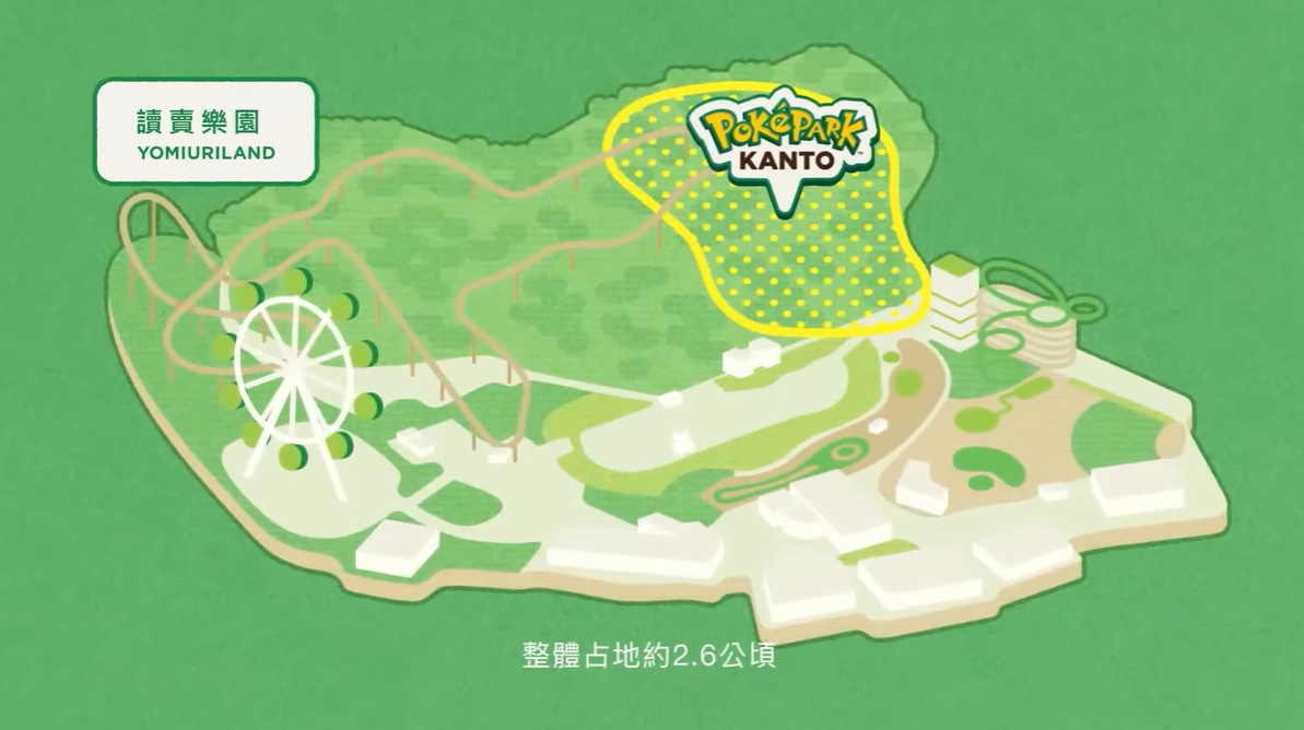 「PokéPark Kanto」為寶可夢首座戶外常設設施,預定設在日本讀賣樂園,整體占地約 2.6 公頃。在「PokéPark Kanto」中,將會由寶可夢們生活的「寶可夢森林」,以及訓練家與寶可夢共同生活的「草紗鎮」兩個部分構成,並擁有多樣的地形,會有眾多寶夢歡樂居住其中,期待與粉絲們共同相遇。目前「PokéPark Kanto」預定將會於 2026 年春季開幕,並預定自 2025 年秋季開放購票。