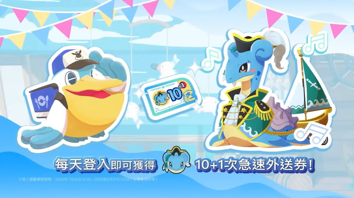 另外官方也宣布,只要登入遊戲,就必定能讓胖丁「FUN暑假」成為店員!而且每天登入遊戲即可獲得 10+1 急速外送券作為獎勵。