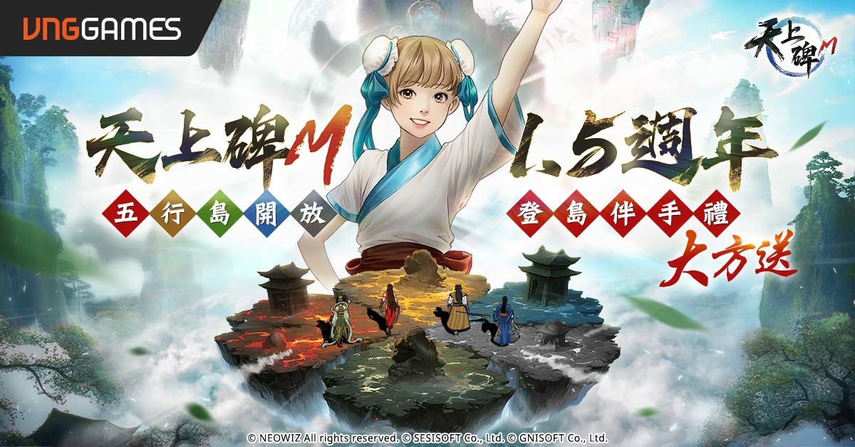 VNGGames 維技遊戲代理的韓國 MMORPG《天上碑M》,於今(23)日宣布迎來 1.5 週年,遊戲團隊隆重推出全新內容與精彩活動,誠摯邀請所有少俠一同探索五行奧秘、挑戰全新副本,並參與豐富的週年慶典!