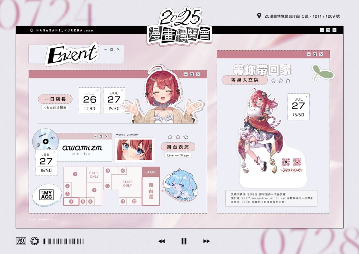 新世代日系台V強勢來襲!人氣 VTuber「水縹そまる」與「花咲くれは」將於 2025 台北國際動漫節聯手登場,攜手「MY ACG」品牌首度出展,話題直衝 ACG 圈熱搜榜,粉絲必衝 C 區 1209、1211 攤位,限定週邊、音樂舞台、拍立得一番賞統統收下!