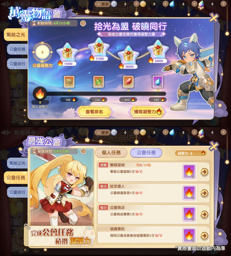 .集結之光,拾光為盟、破曉同行!完成指定公會任務即可獲得「凝聚力量」,提升公會總積分與個人貢獻。