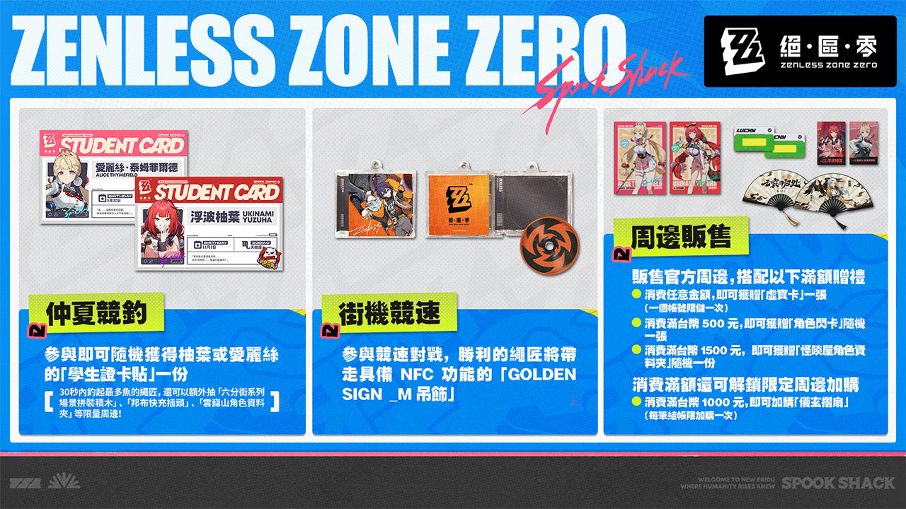 為回應玩家熱烈支持,本次《絕區零》「夏日快閃」活動亦同步推出多重現場消費回饋,凡於活動會場購買《絕區零》官方商品,不僅可將精緻周邊帶回家,更有機會獲得獨家虛寶與限定贈品,數量有限、送完為止。