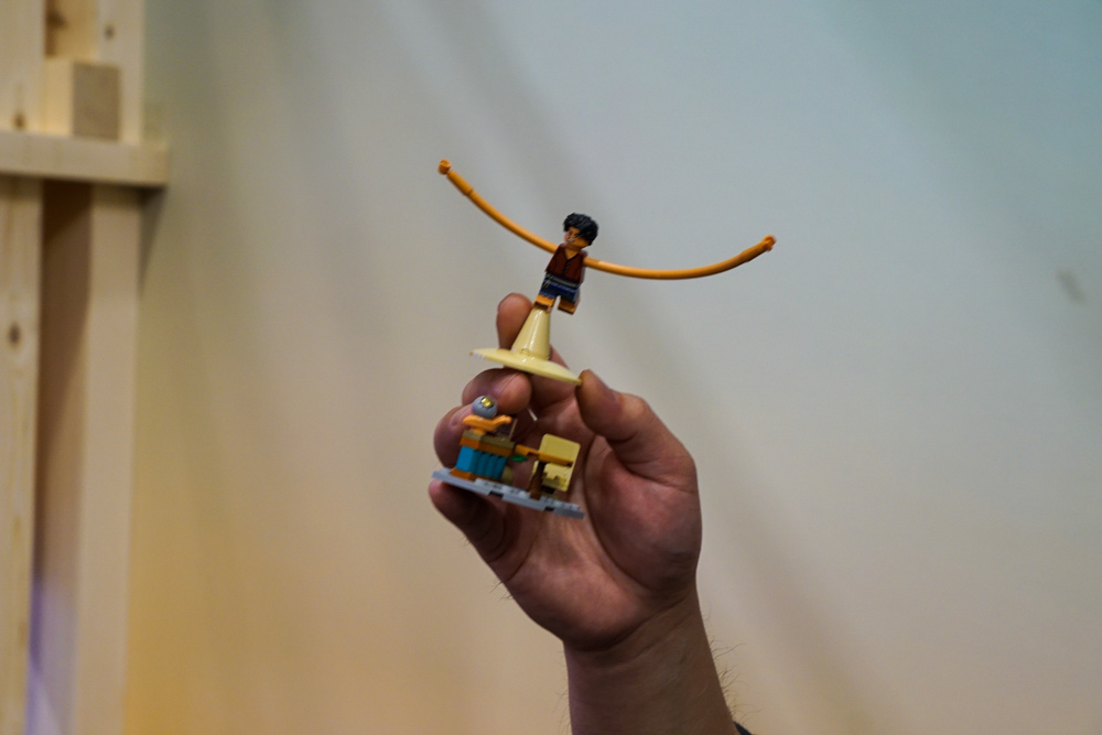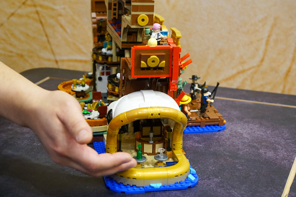 他介紹「風車村小屋」主要呈現魯夫童年時期遇到紅髮傑克和瑪奇諾的場景,並首次為魯夫和紅髮傑克設計三種草帽零件:魯夫的頭髮、獨立草帽零件,特別是可拿在手上,是樂高第一次在帽子零件上加入把手,能實際做出遞草帽動作,以及內部有頭髮的草帽零件供紅髮傑克使用。小屋可打開讓瑪奇諾與魯夫互動。內含可拆卸懸賞單告示牌,共有八種不同懸賞令海報可讓粉絲收集展示。