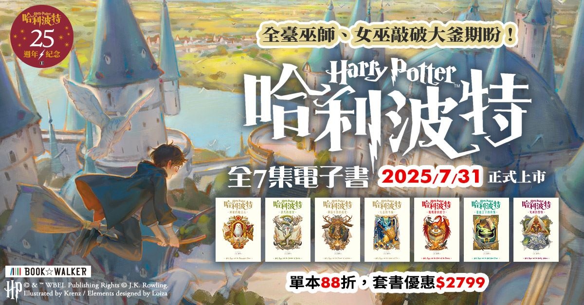 本日重磅登場的還有全球讀者熱愛的魔法經典《哈利波特》電子書上市活動!即日起至 8 月 31 日,《哈利波特》單本優惠 88 折、套書優惠價 2,799 元。活動期間購買單集,限時贈送對應的封面草稿與彩圖明信片圖,購買套書除了獲得所有單集贈品,再送書背圖與 BOOK☆WALKER 獨家電子書架封面! 7 月 31 日前預購的讀者可額外獲得 10 倍點數回饋,作品上架後就能直接於書櫃內閱讀。歡迎讀者把握活動時間一次珍藏,隨時隨地重溫讓人陶醉的魔法世界!