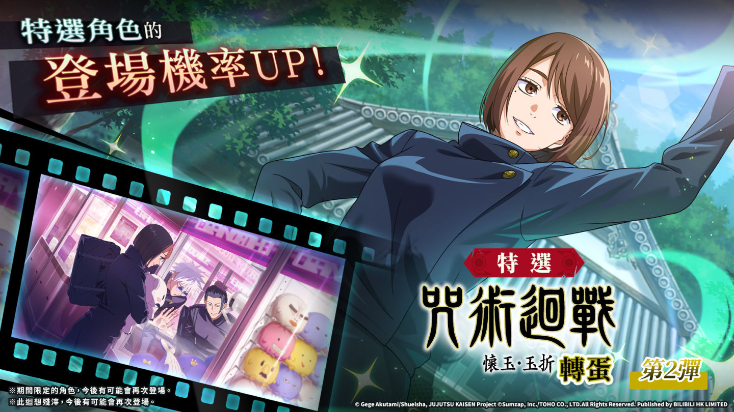 全新「咒術迴戰 懷玉.玉折」轉蛋也將於 7 月 25 日維護結束後(UTC+9)正式舉辦!本次轉蛋中,新登場角色和迴想殘滓的登場機率 UP。高專時期的五條、家入將以全新視覺登場,還原動畫名場面,不容錯過!