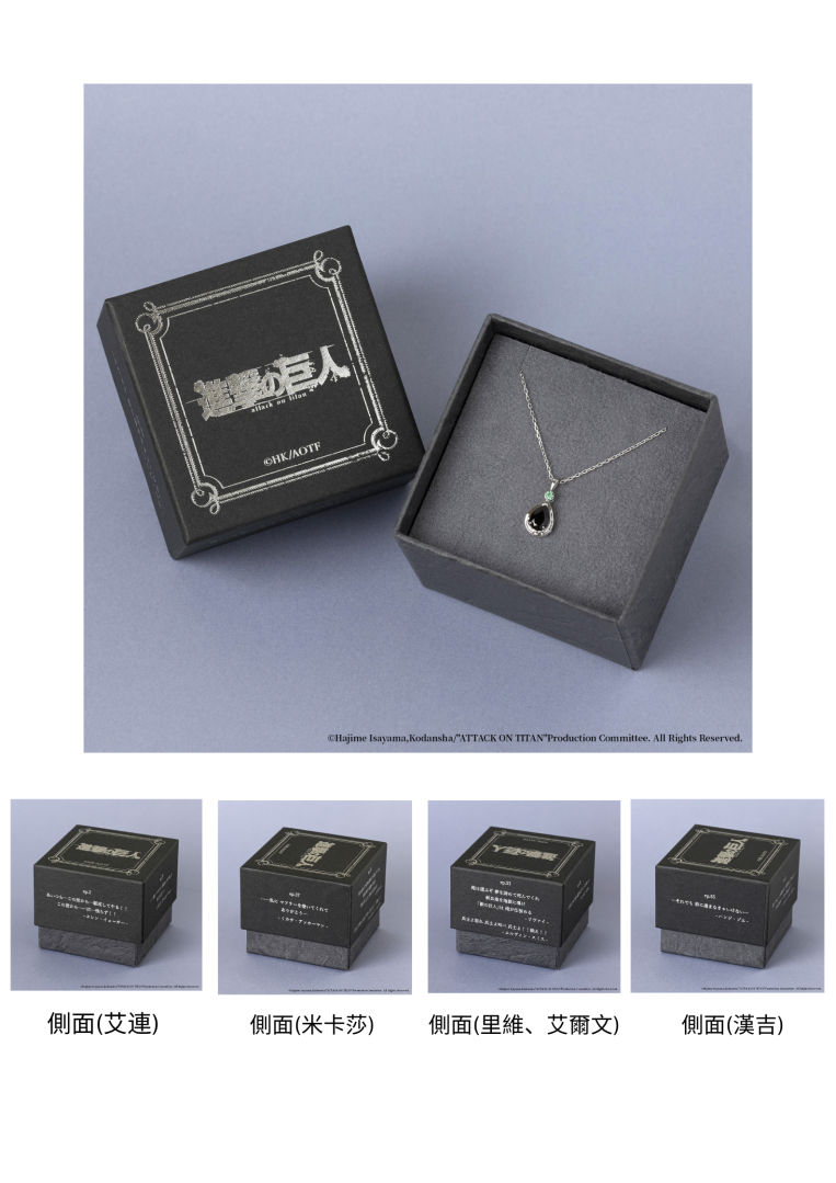 此次,TUfave推出與動畫《進擊的巨人》的聯名珠寶。以經典場景為靈感,細緻展現角色魅力及世界觀,共有五款項鍊。採用大顆天然寶石為主角,設計簡約且具質感,巧妙融入日常生活,打造出「專為大人設計的聯名珠寶」。