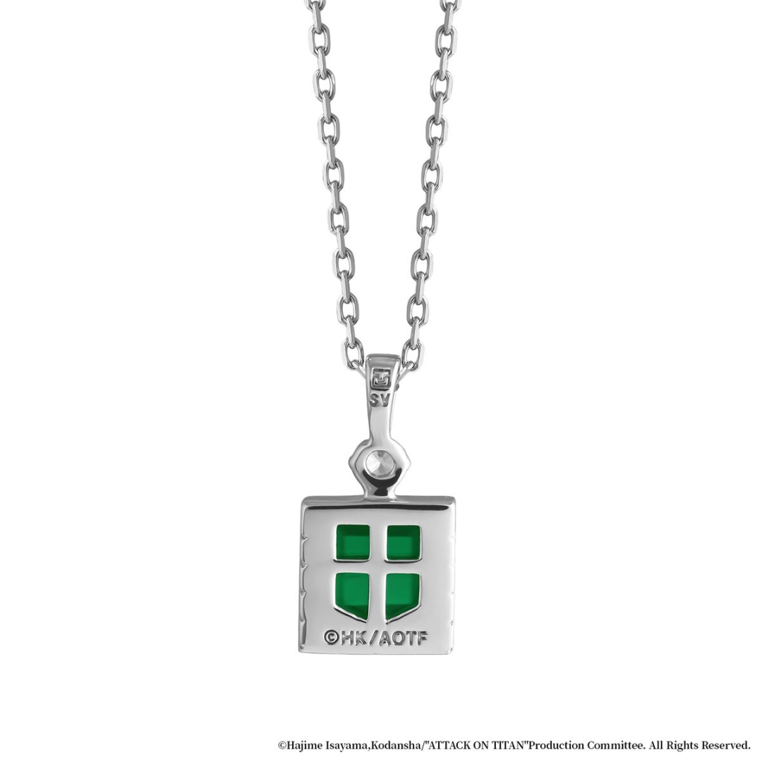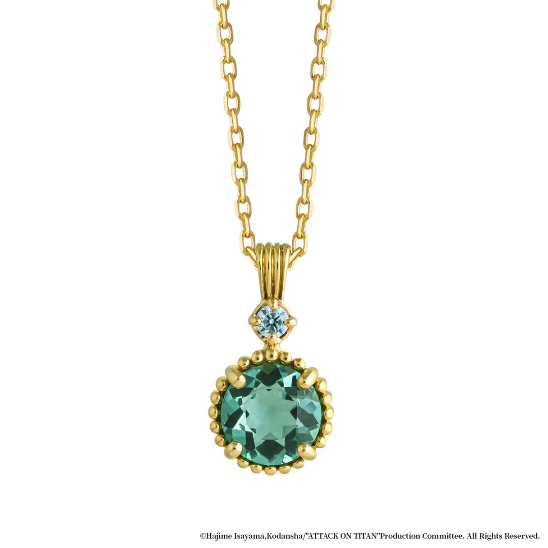 靈感來自艾爾文帶領新兵迎戰巨人的場景。主石選用象徵「和諧」與「再生」的綠水晶,並以細緻的珠邊環繞寶石,象徵眾多新兵一同迎戰巨人。墜飾扣刻有象徵信號彈的線條,並鑲嵌代表艾爾文眼睛顏色的淡藍色立方氧化鋯,展現他作為先鋒勇敢對抗巨人的英勇氣概。