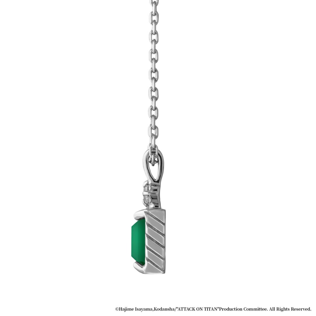 靈感來自里維誓言擊倒獸之巨人的場景。主石選用象徵「冷靜沉著」與「智慧」的綠瑪瑙,綠色象徵調查兵團制服的顏色。鑲座側面雕刻有立體機動裝置超硬質刃的線條,在背面設計了以「自由之翼」徽章為靈感的鏤空圖案。墜飾扣鑲嵌象徵自由之翼的透明立方氧化鋯,為整體增添不經意閃耀。