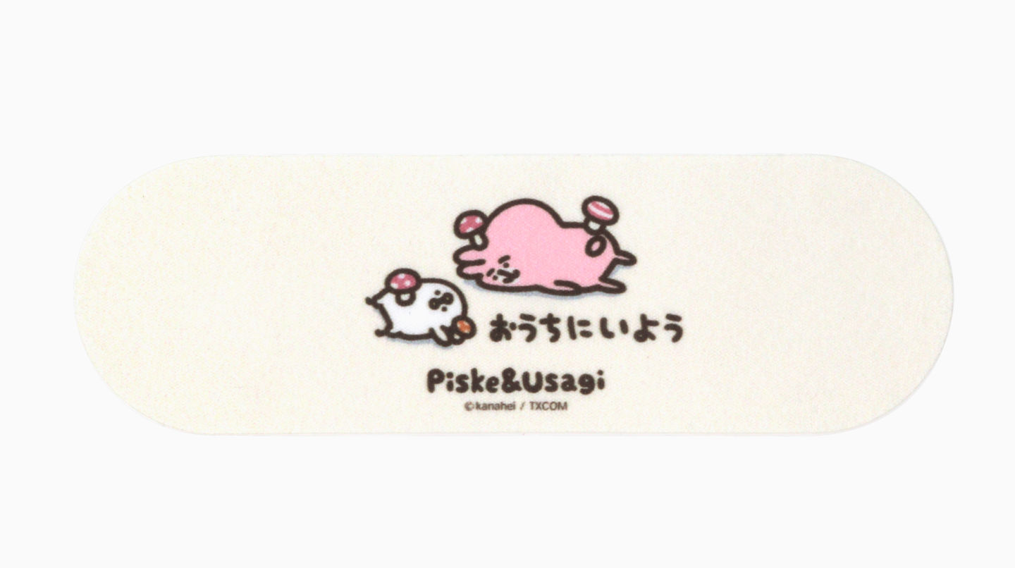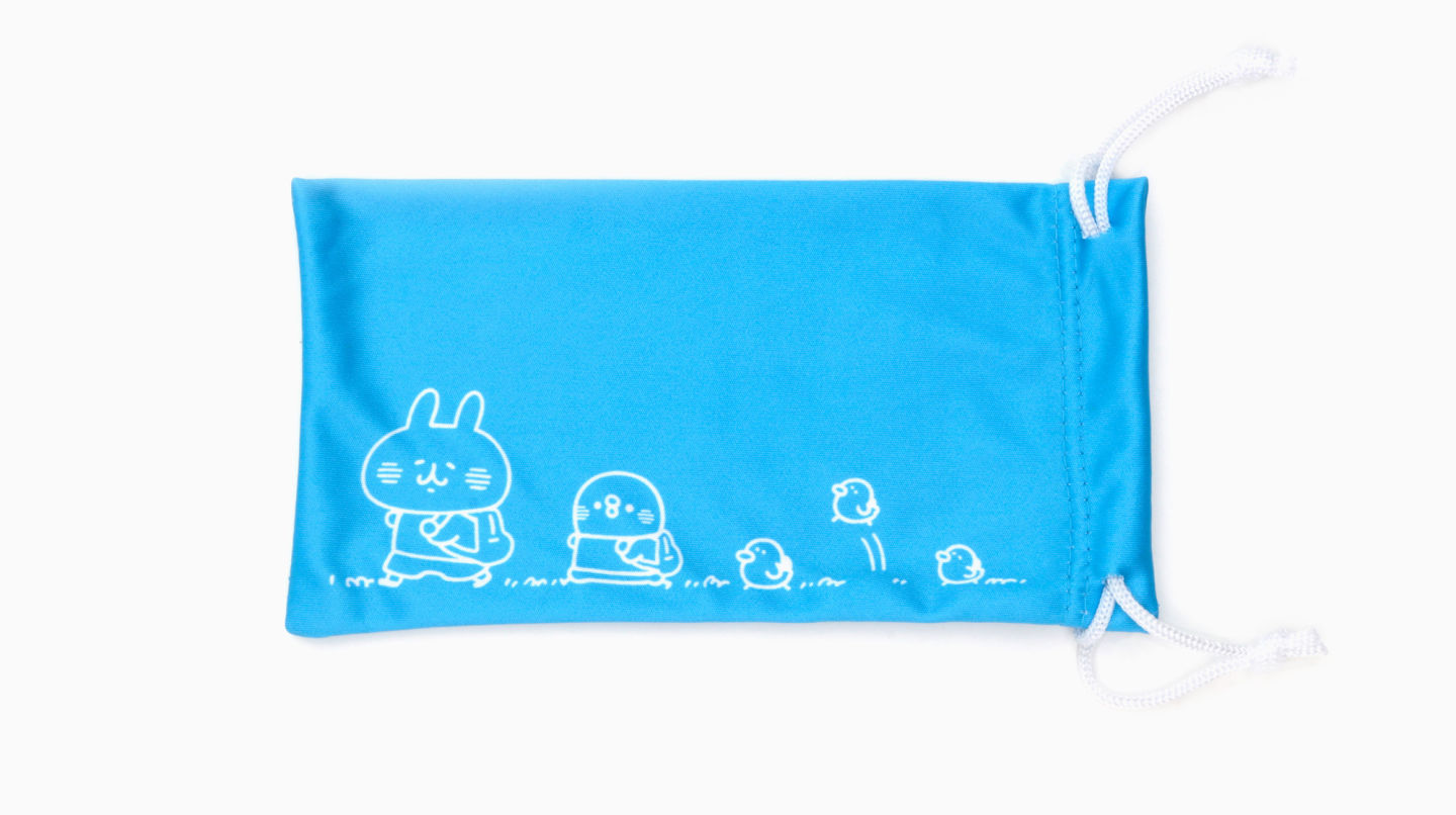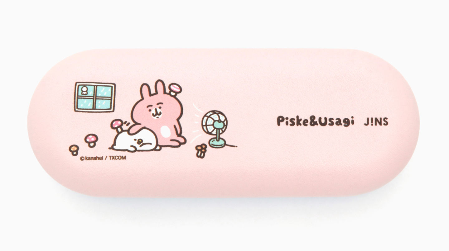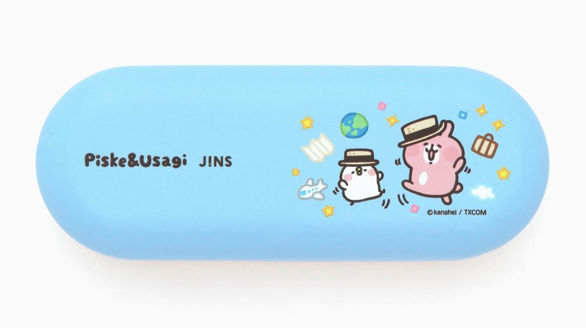 超萌眼鏡就要搭配超萌鏡布與鏡盒。JINS 特別設計兩款專屬鏡盒,天藍色款圖樣是一起出遊,興奮到跳起來的P助與粉紅兔兔,粉紅色款則是在家躺平耍廢到長香菇,慵懶模樣讓人看了噗哧一笑。Switch 系列附贈的一起出遊前片袋,印有P助與粉紅兔兔背著背包出遊,其他小動物跟在後頭,快樂團遊的可愛畫面,瞬間秒融化。