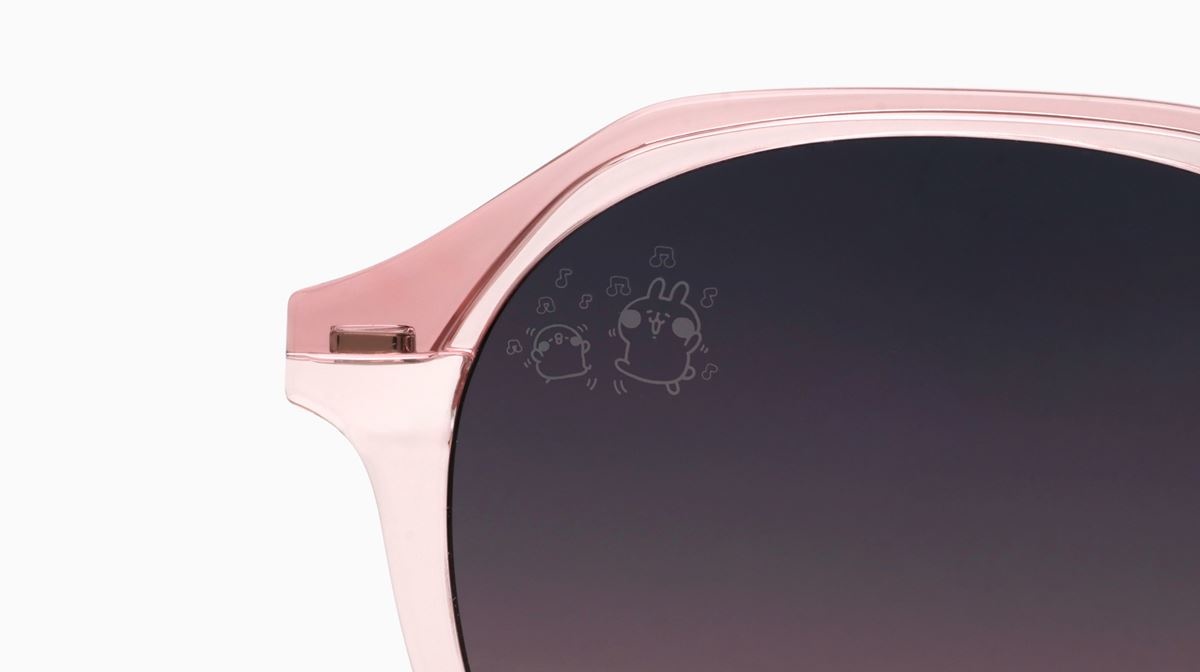 延續金屬框及 Airframe 膠框,這次聯名第二彈特別加入人氣 Switch 系列,自由切換光學眼鏡、太陽眼鏡。以出遊時光為主題,選用流行的威靈頓框及皇冠框,鏡腳前端刻印「出來玩吧!」的日文字樣,前鏡片分別搭配P助與粉紅兔兔開心地發出閃耀光芒,及P助與粉紅兔兔快樂的哼哼唱唱 2 款圖樣,將相伴出遊的歡樂時光展露無遺。