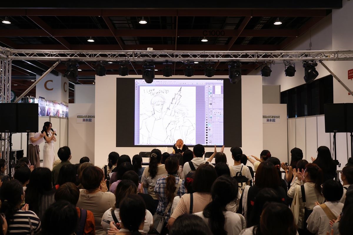 緊接著進入現場作畫的環節,決定題目的方式是由一位粉絲指定角色,再由一位粉絲指定動作,舉手搶答由やまねあやの老師指定。在首位粉絲指定「秋仁」後,第二次的舉手搶答人數驟減,讓老師驚訝「大家好像不太想要秋仁?」,不過第二位粉絲指定動作為「在台北 101 前和男朋友手牽手」,讓現場粉絲大呼滿意,老師更是寵粉,雖然題目規則為指定一位角色,老師現場作畫卻直接把麻見秋仁 CP 一起畫上。老師數次哭笑「時間好趕」,但出道 20 年以上的堅強實力,依然在數十分鐘內就將兩人甜蜜逛街的情境呈現出來,現場粉絲無不用幸福的表情欣賞老師作畫過程。