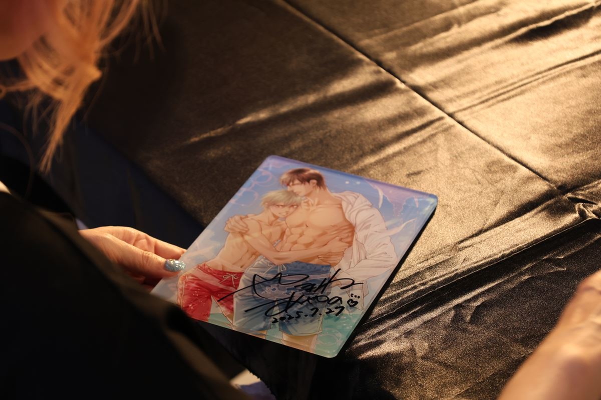 2025漫畫博覽會日本館舞台活動第一場「やまねあやの老師見面會」,是老師於漫博的第二場活動,一出場便受到粉絲熱情歡迎。開場先以問答暖暖身,向老師請教《探索者系列》畫得最開心、最有成就感的是什麼?老師馬上回答是在第五集秋仁被綁架麻見相救的段落,老師笑說「秋仁很容易被抓走」,讓粉絲們會心一笑。