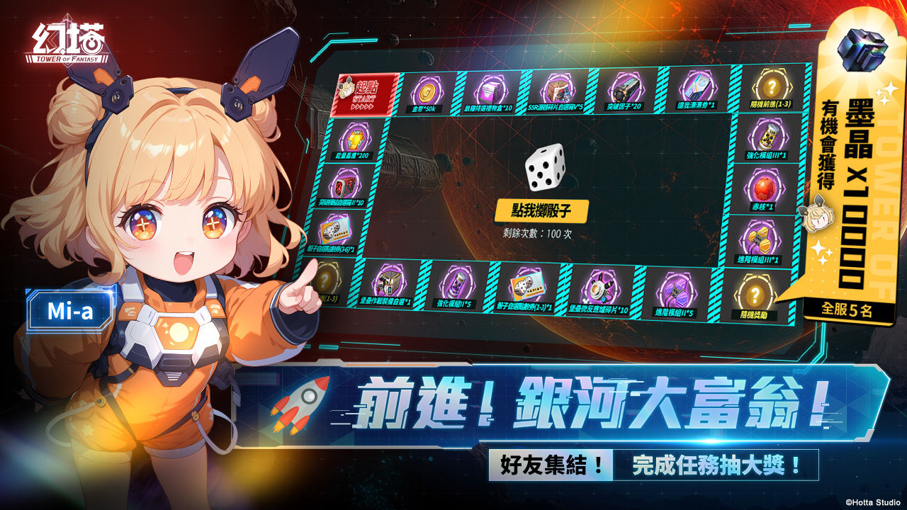 《幻塔》三週年限定大富翁活動開啟!授權者遊戲等級達 50 級即可參與,完成指定任務就能獲得赤核、SSR 源器碎片箱、特種憑證等虛寶獎勵。每日分享遊戲畫面還能獲得額外骰子券參與大富翁抽獎活動,有機會獲得墨晶×10,000 及自選裝備箱等驚喜好禮!